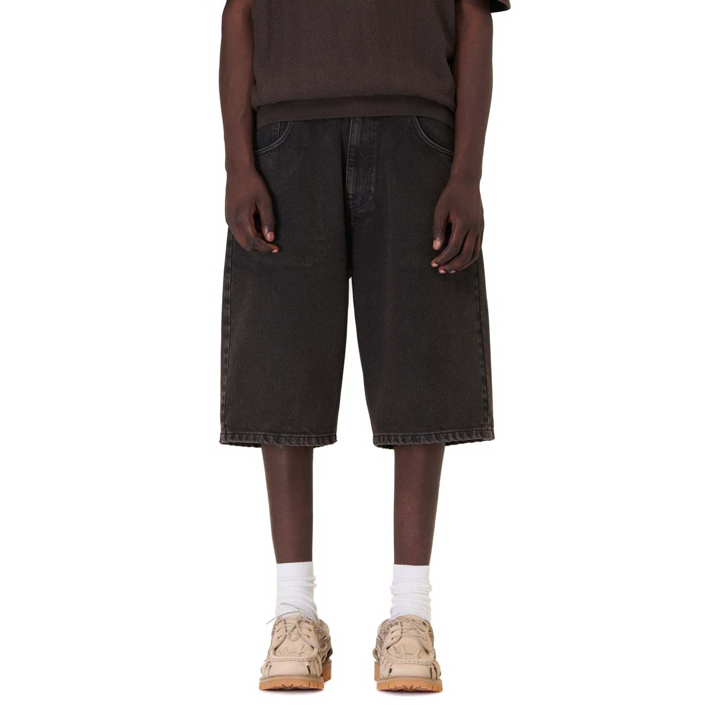 "aziza" brown washed Jorts
