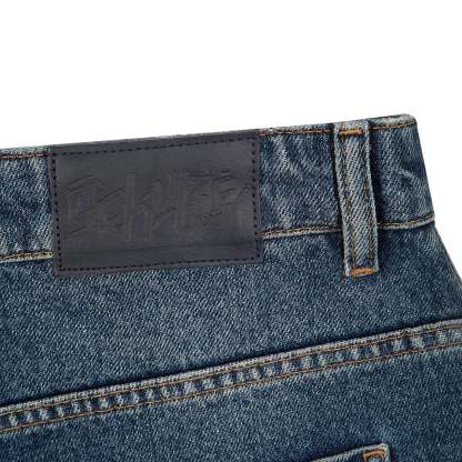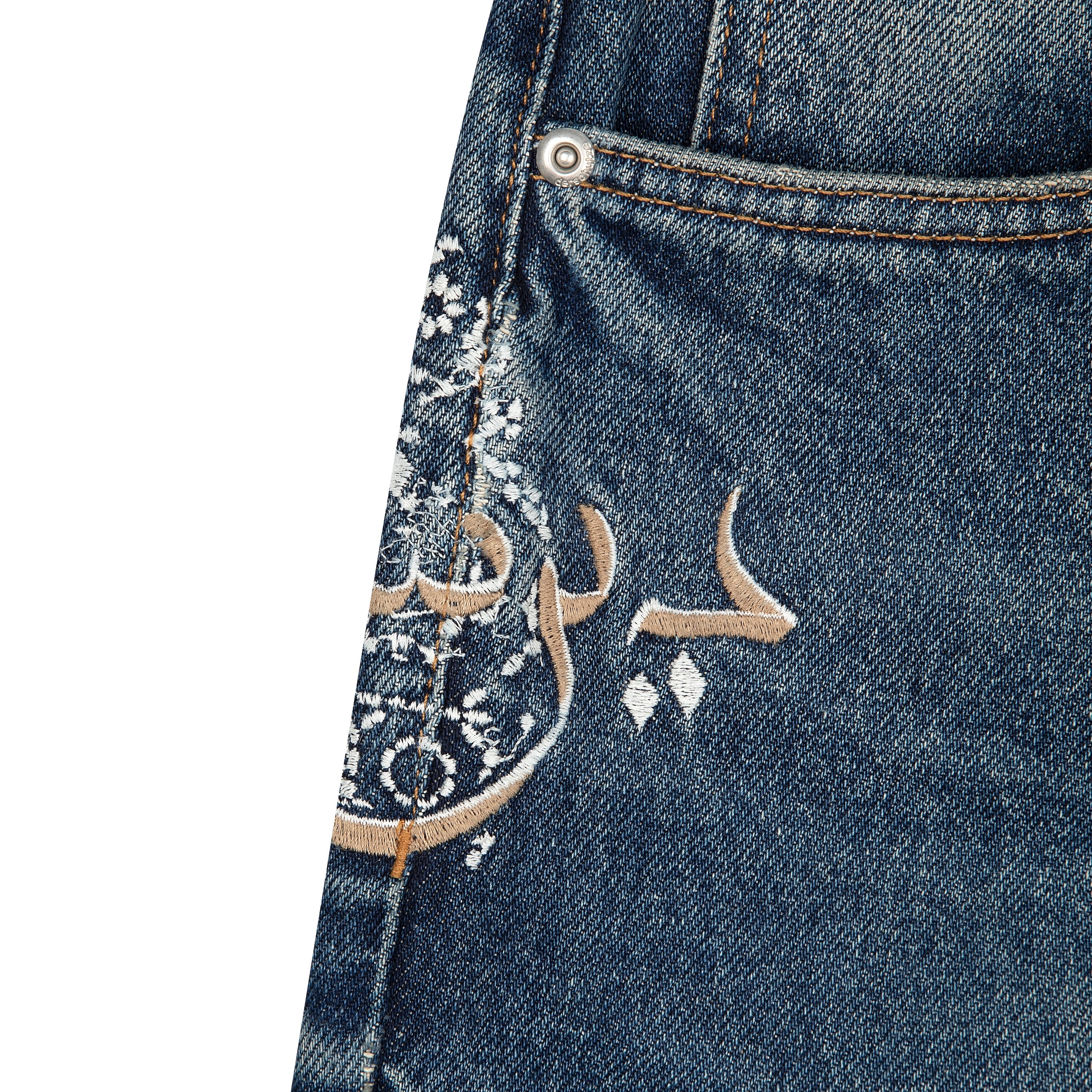 14,5oz denim / 100% cotton / embroidery on front and back / debossed printed leather patch / custom button / wash inside out / fits true to size