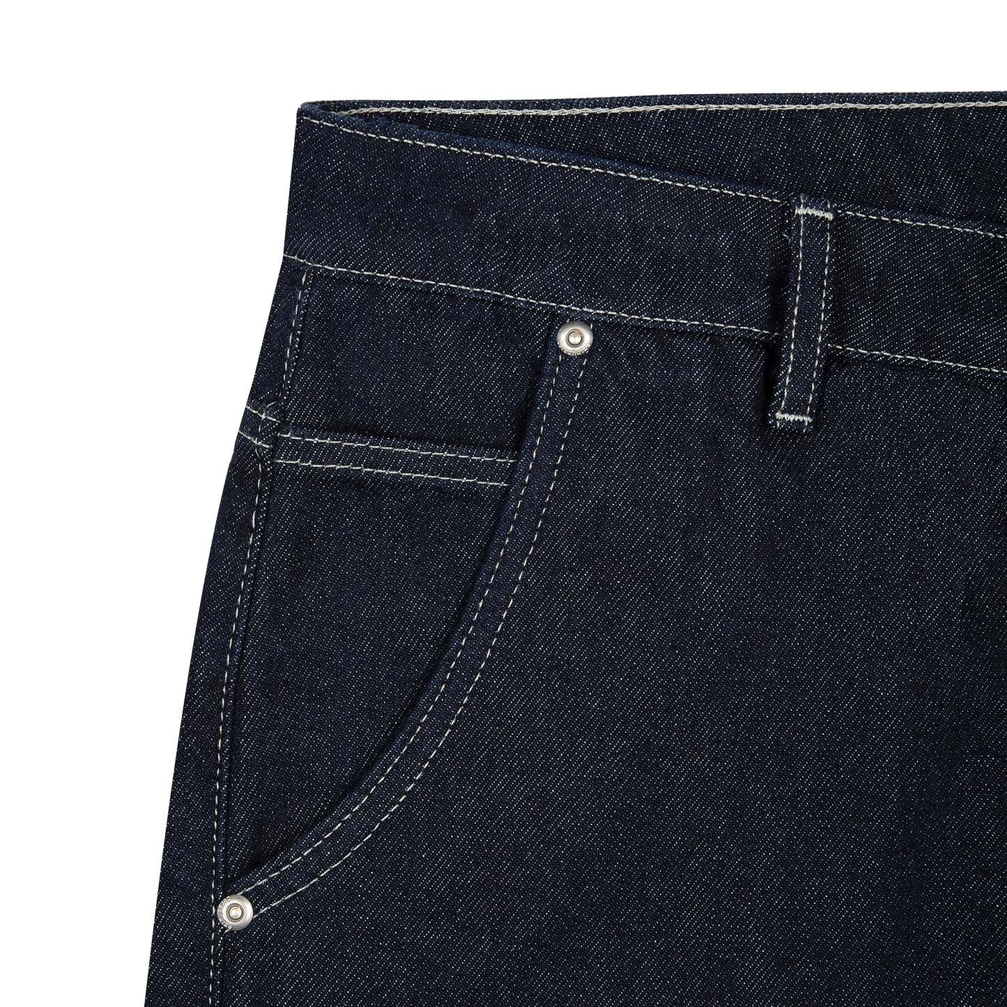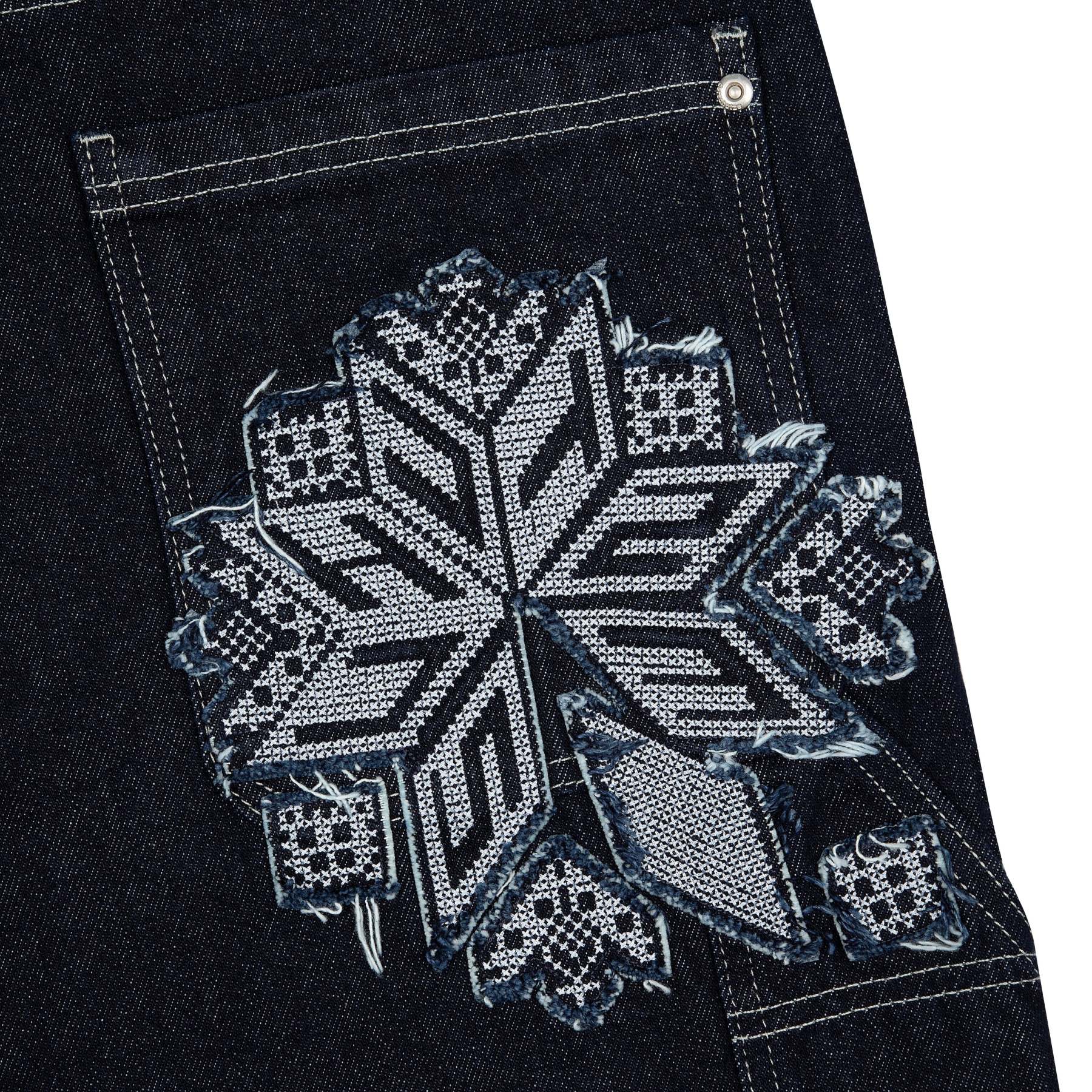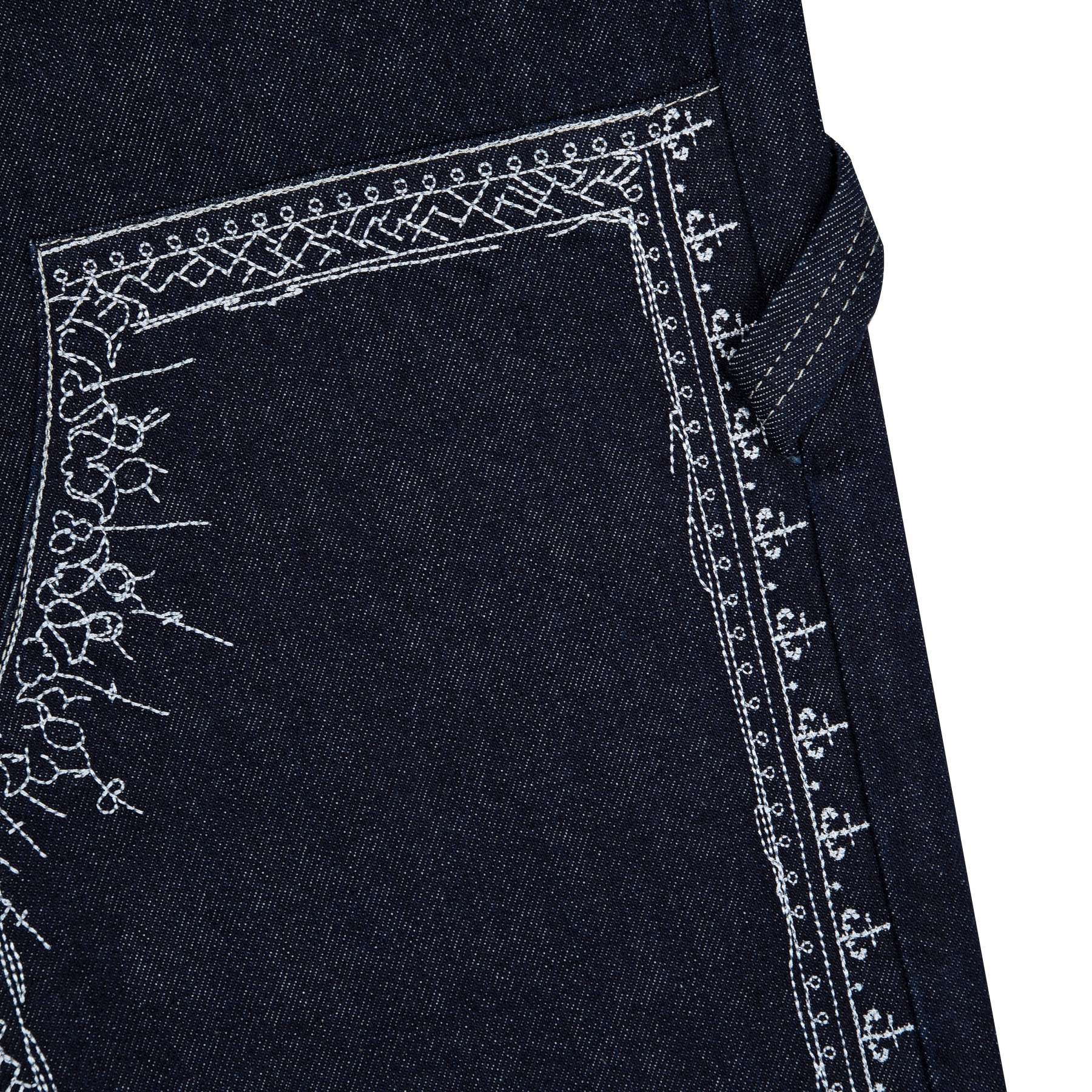 14,5oz denim / 100% cotton / embroidery on front panels and back pocket / embroidered leather patch / custom button / wash inside out / fits true to size