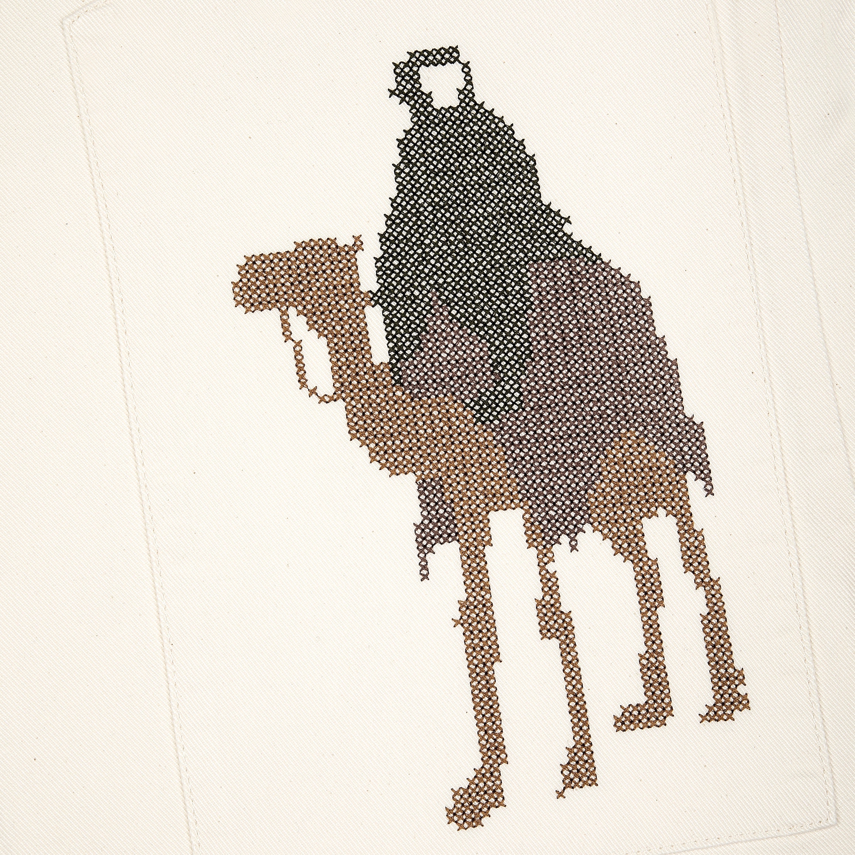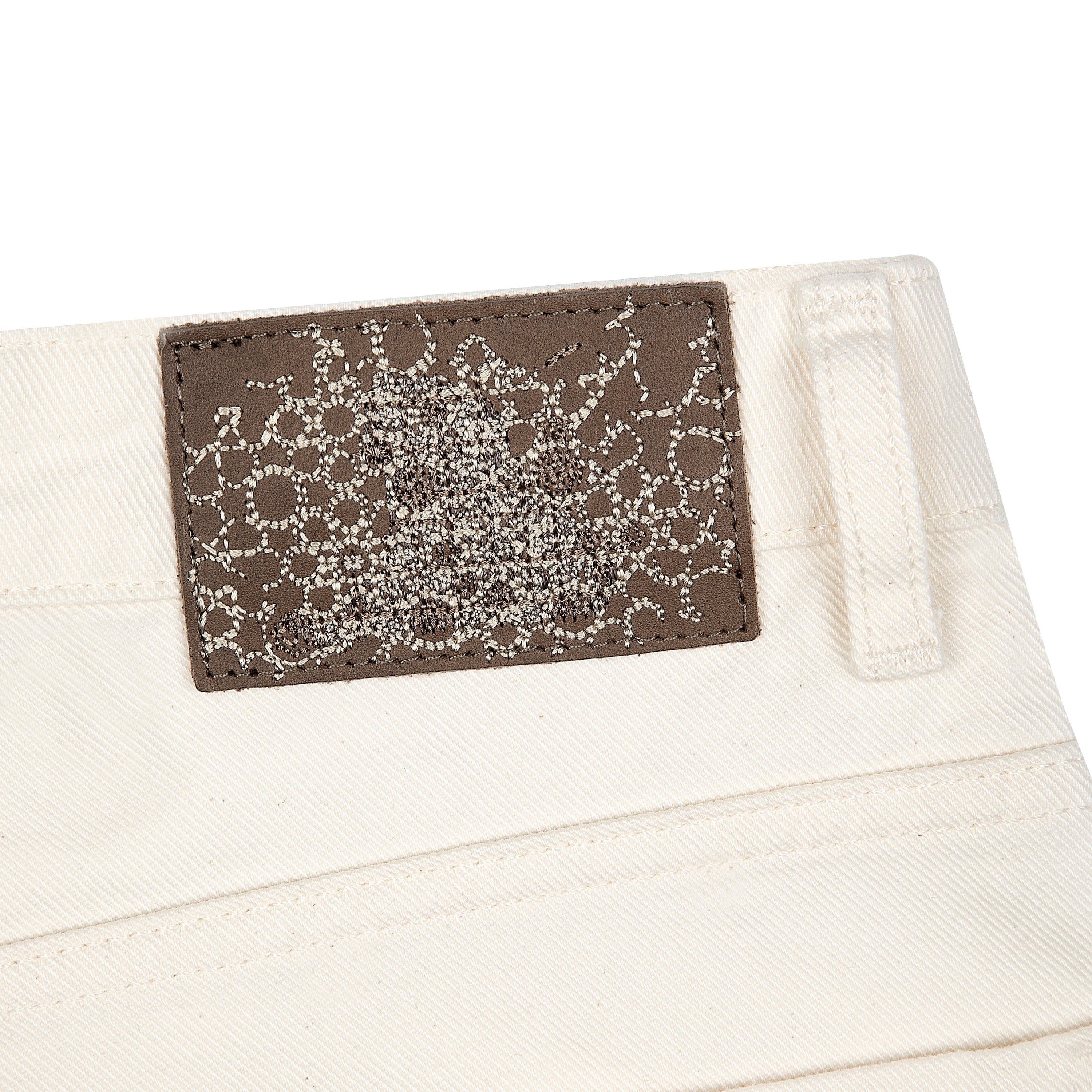 14,5oz denim / 100% cotton / embroidery on front panel / embroidered leather patch / custom button / wash inside out / fits true to size
