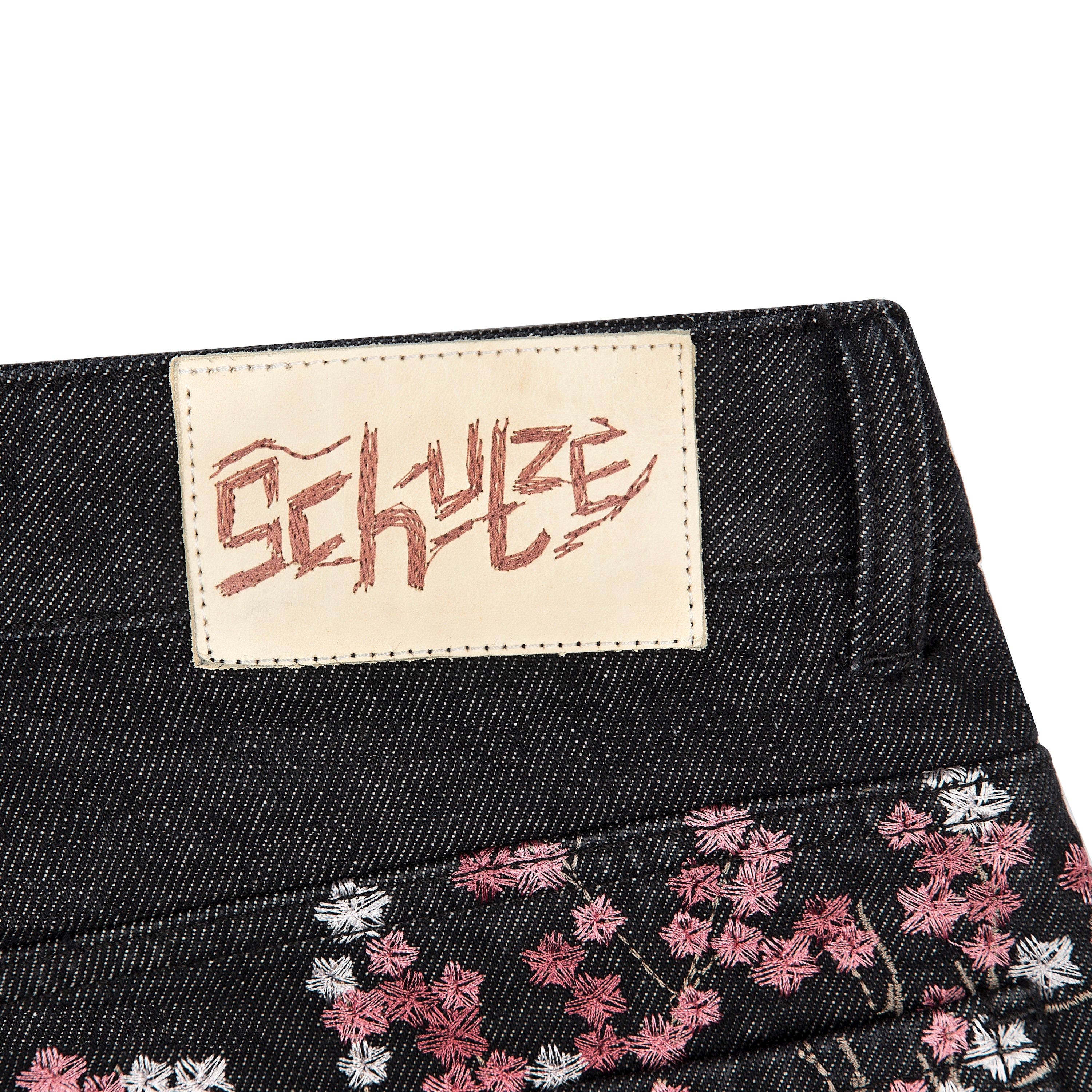 14,5oz raw denim / 100% cotton / embroidery on back / embroidered leather patch / pleats on front / custom buttons / wash inside out / fits true to size