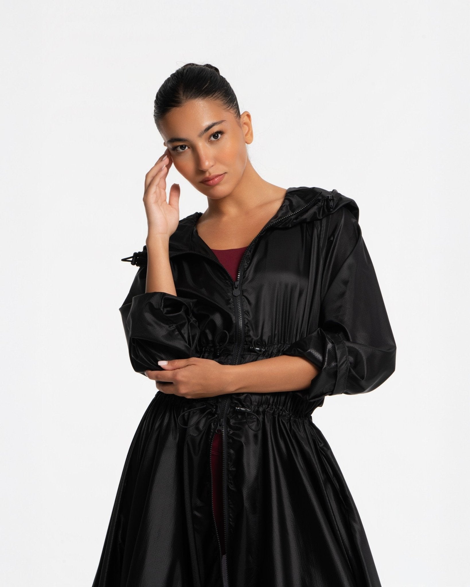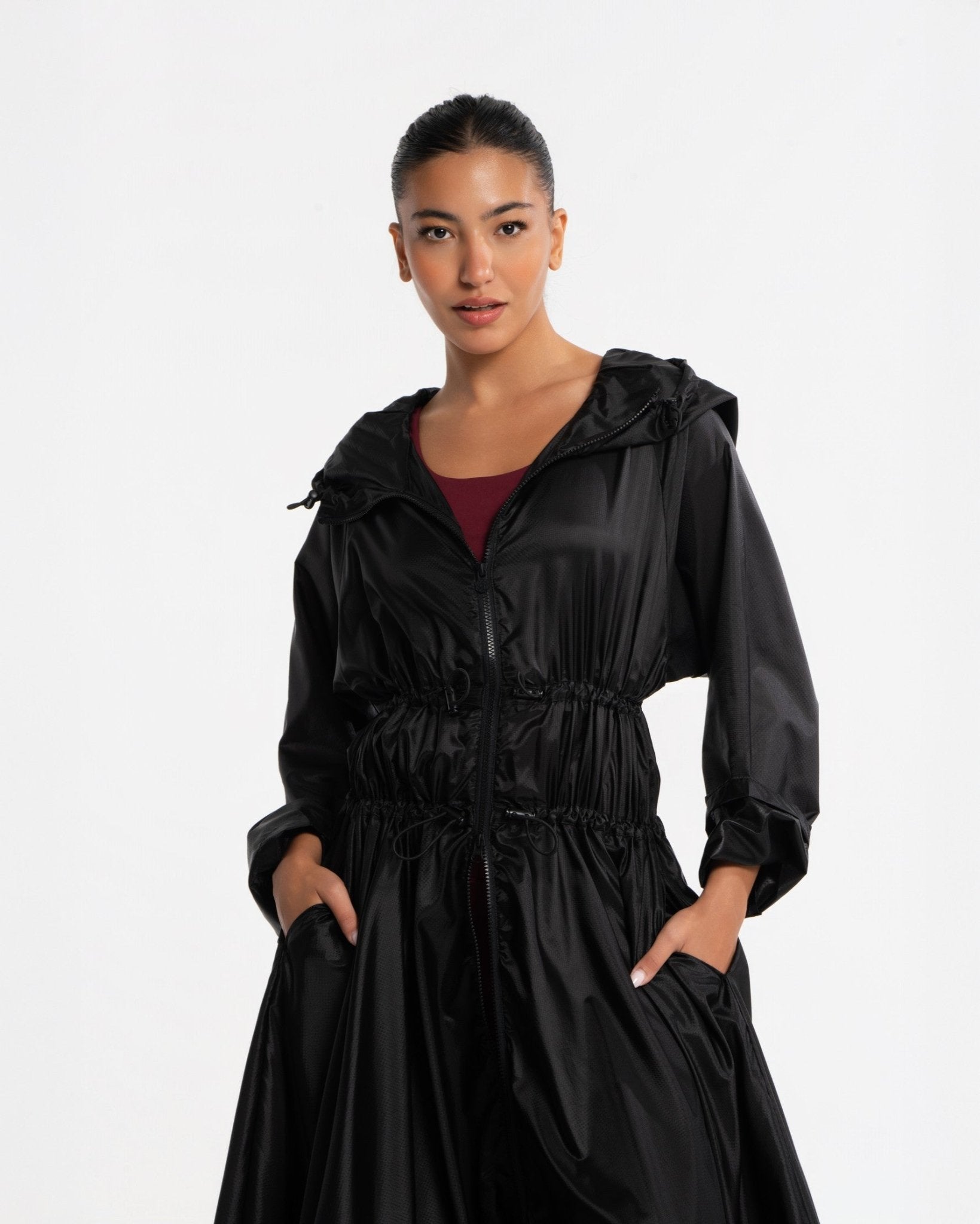 An iconic Kayanee piece that takes you from the gym to the street. Crafted from ultra-lightweight nylon, this windbreaker is designed with a fluid, high-volume silhouette that moves effortlessly with you. A double drawcord waist, and a long A-line hem give it a bold yet versatile edge. A true statement layer, functional and unmistakably Kayanee.