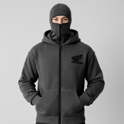 • Comfortable hood with text details for added flair and protection from the elements