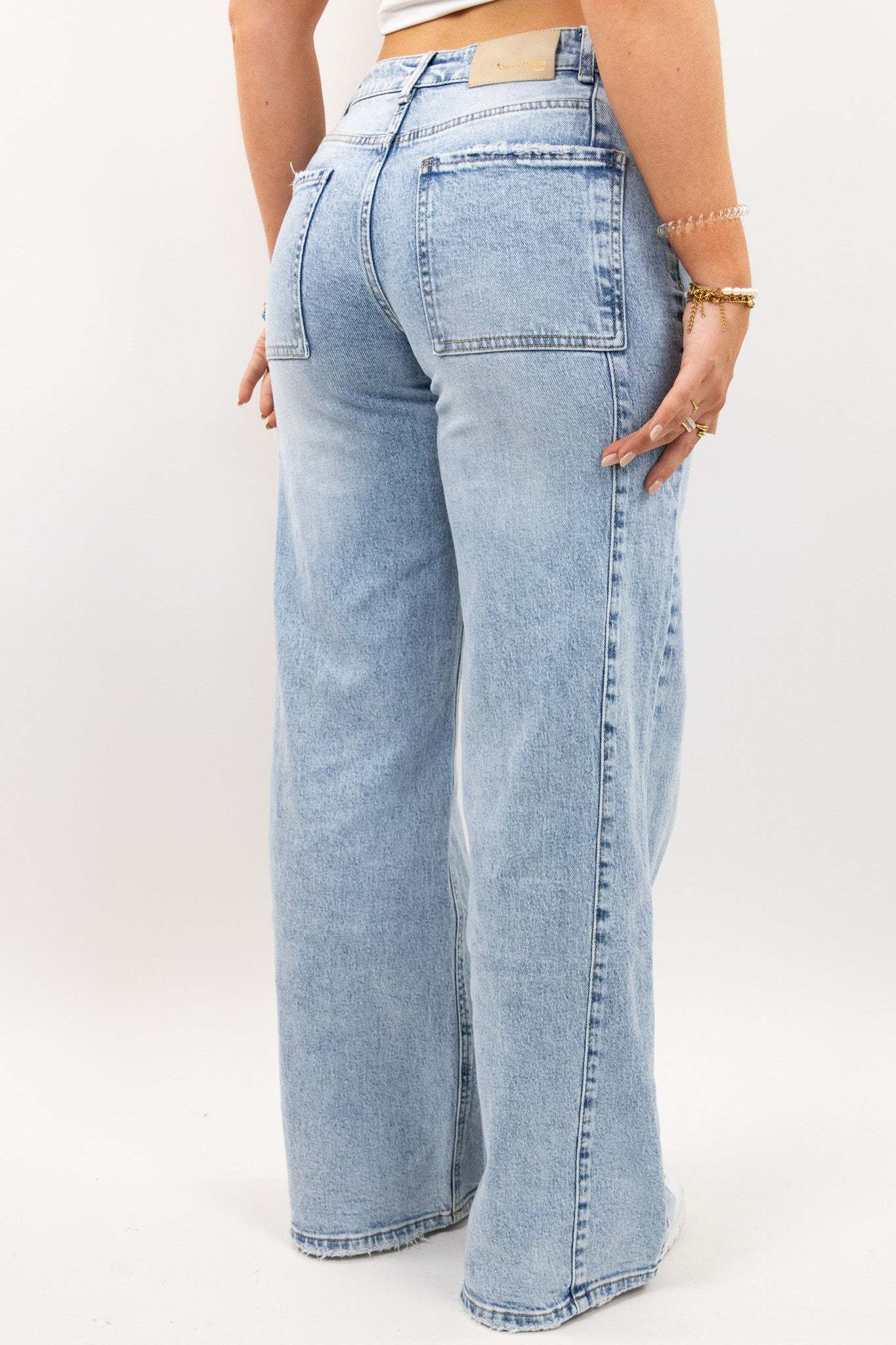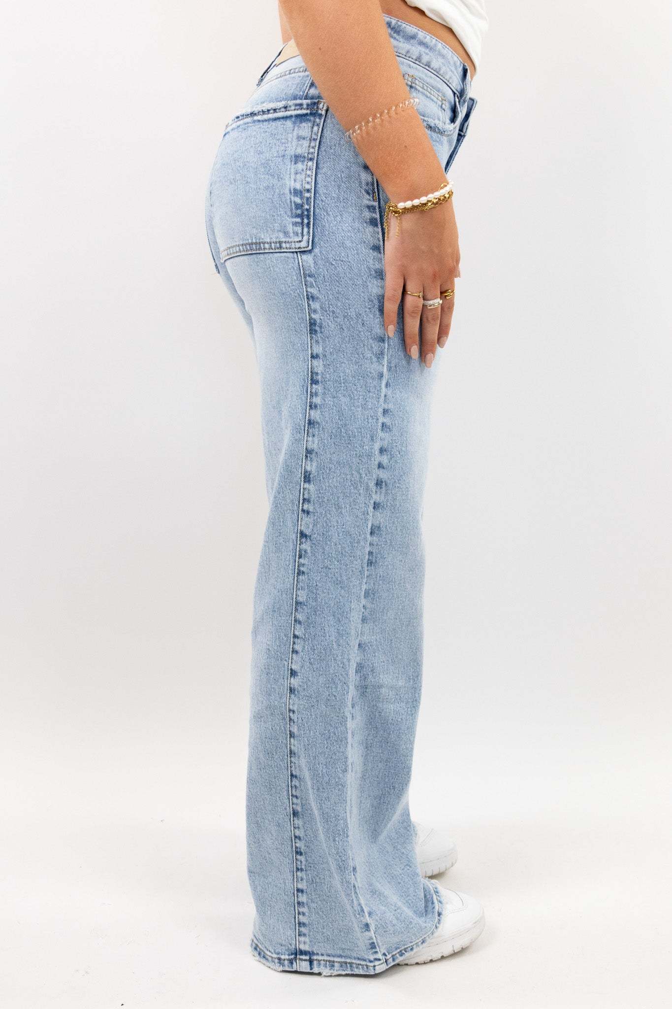 These mid waist jeans feature a subtly striking side detail that elongates the legs and adds extra contour. The soft stretch fabric hugs your shape perfectly, while the wide leg fit creates a relaxed and flattering silhouette. Style with sneakers or heels, this pair works every time. Extra comfy, extra special.