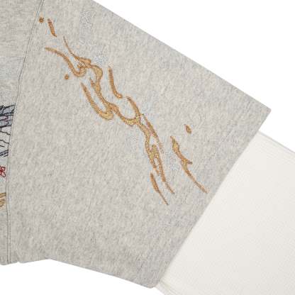260gsm fabric / 100% preshrunk cotton / waffle sleeves (100% cotton) / embroidery on back and sleeves / fits true to size