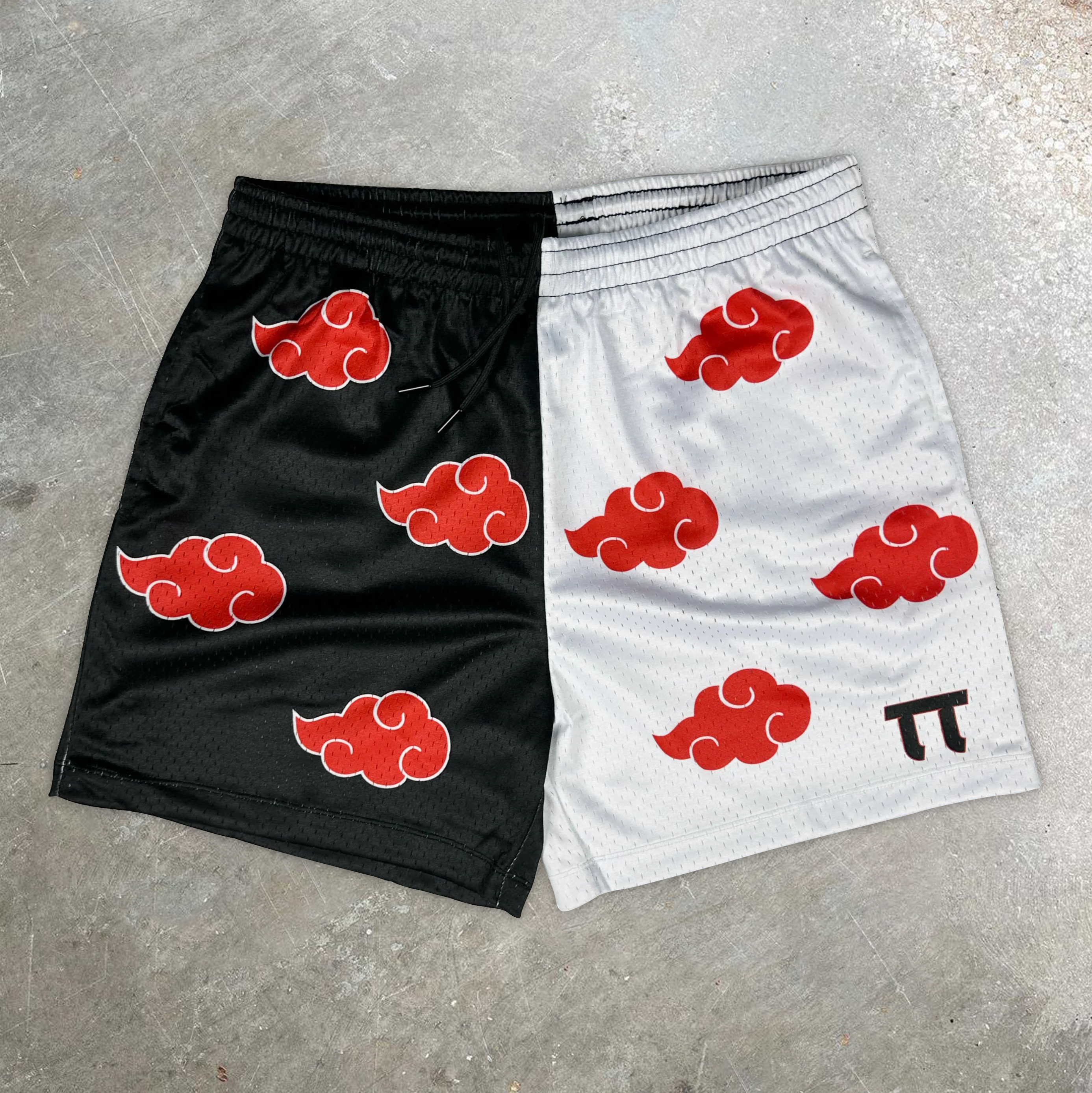 Anime print casual street mesh shorts