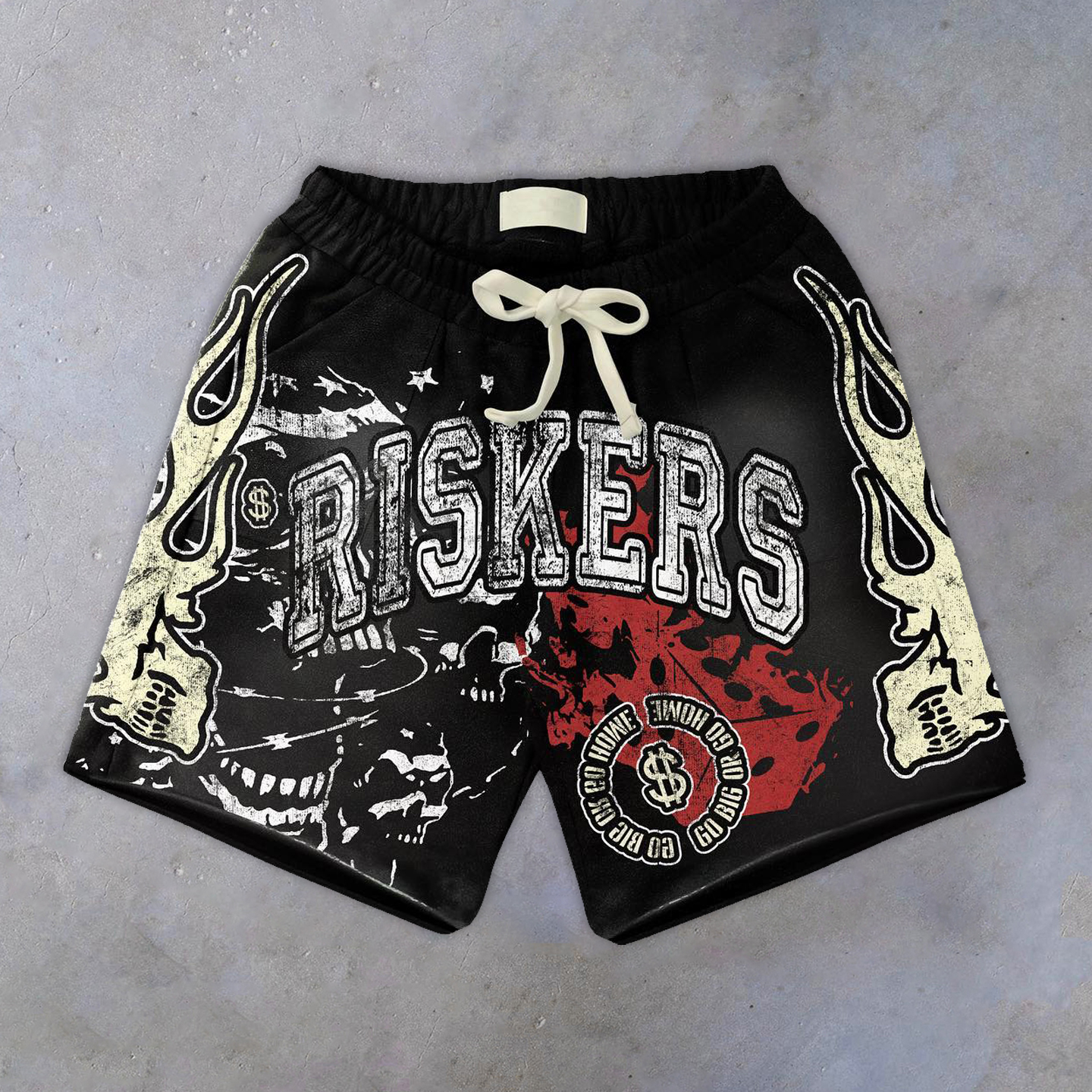 Street Flame Skull Print Mesh Shorts
