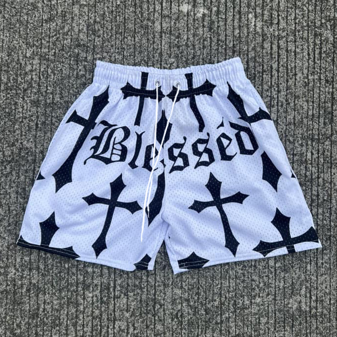 Blessed Cross Print Mesh Shorts