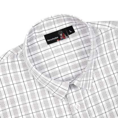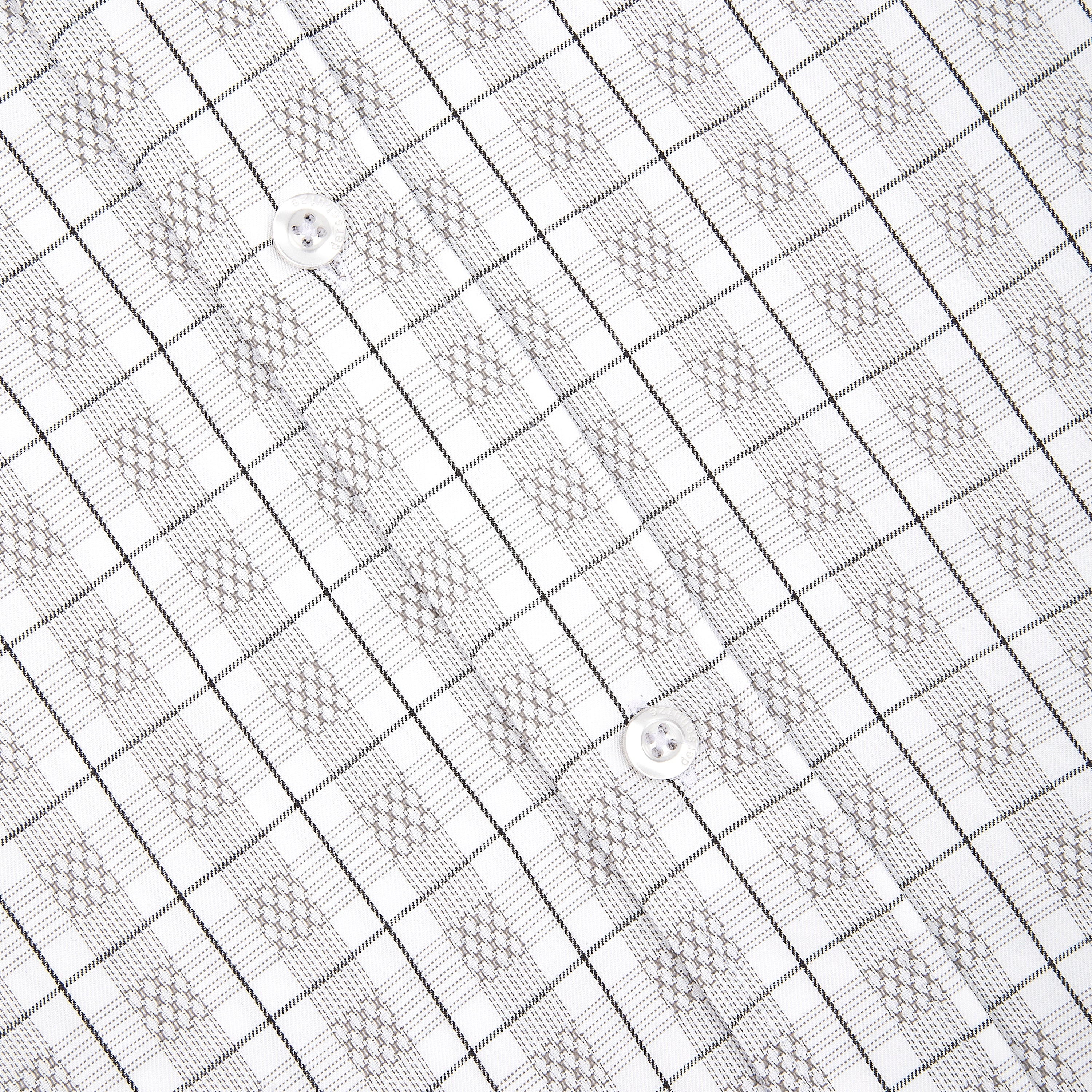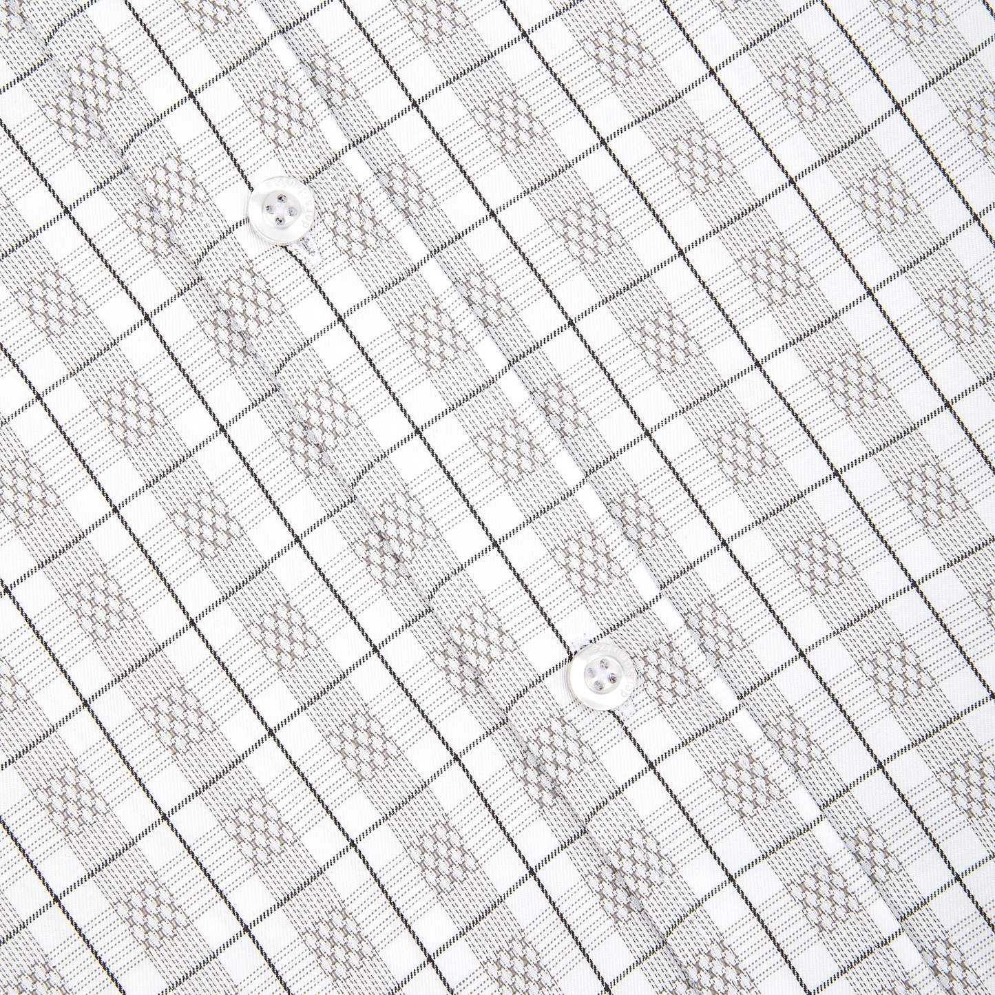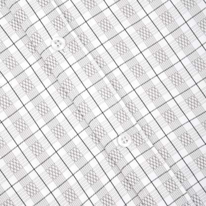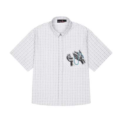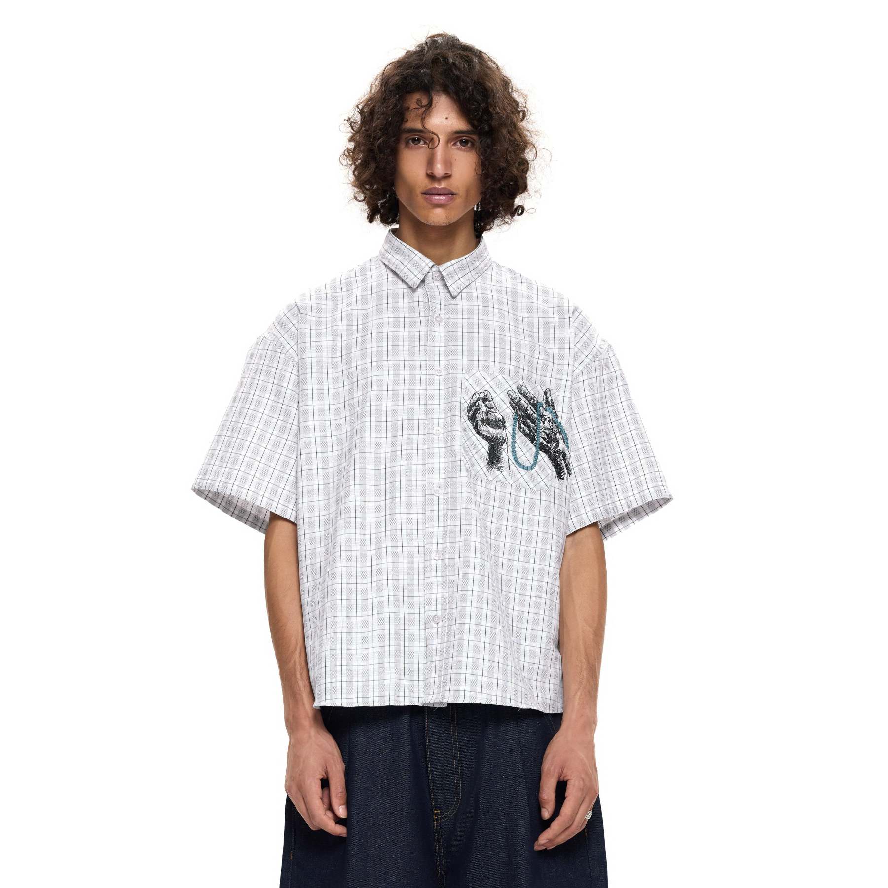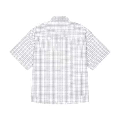 plaid patterned twill fabric / 52% cotton 48% polyester / embroidery on front / custom buttons / curved hem / relaxed fit / fits true to size