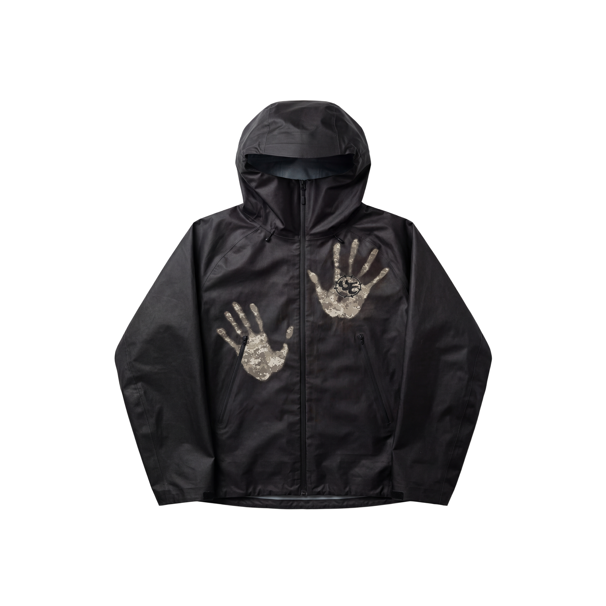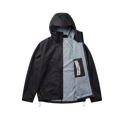 A fully waterproof technical jacket built for all conditions. The surface is heat reactive, revealing a hidden pattern when exposed to body heat, steam, or temperature change  then returning to its original state as it cools