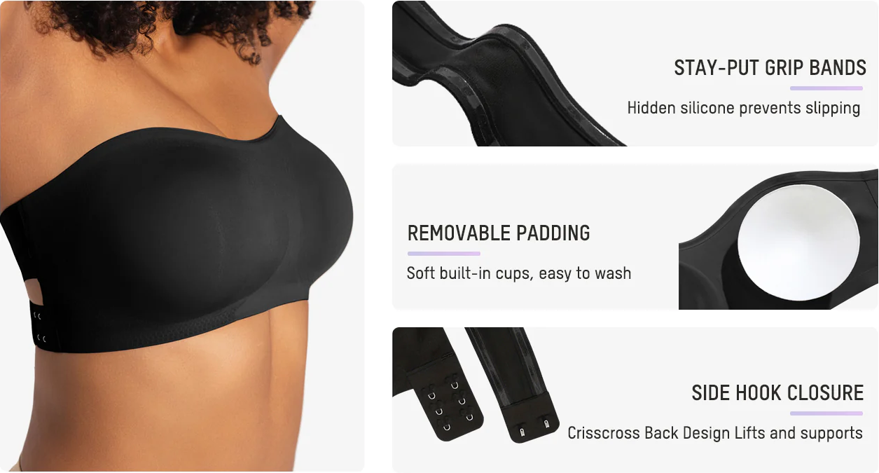 STRAPLESS DESIGN: Say goodbye to the hassle of constantly adjusting your strapless bra. Enjoy a worry-free experience with a cross-back design that provides reliable grip and keeps the bra in place. Feel confident and comfortable all day.