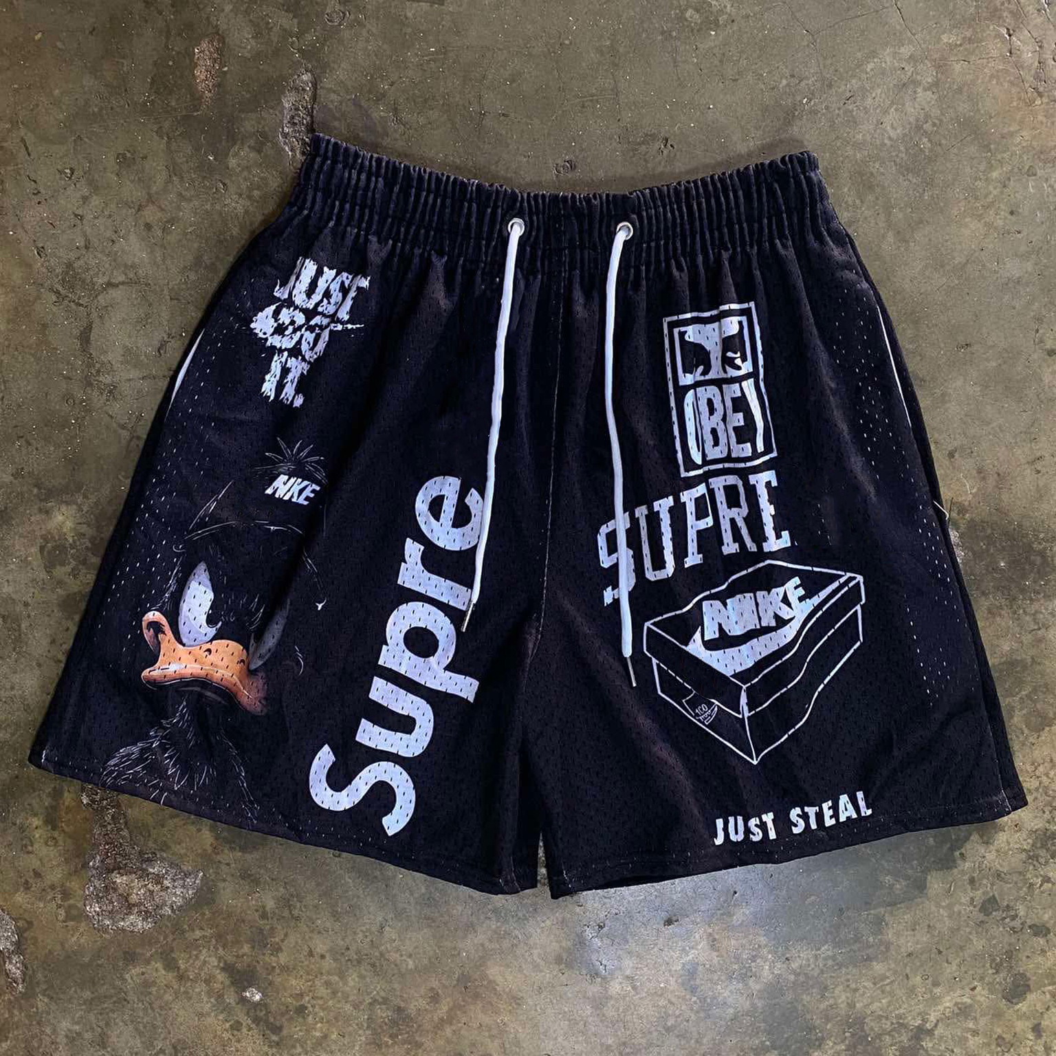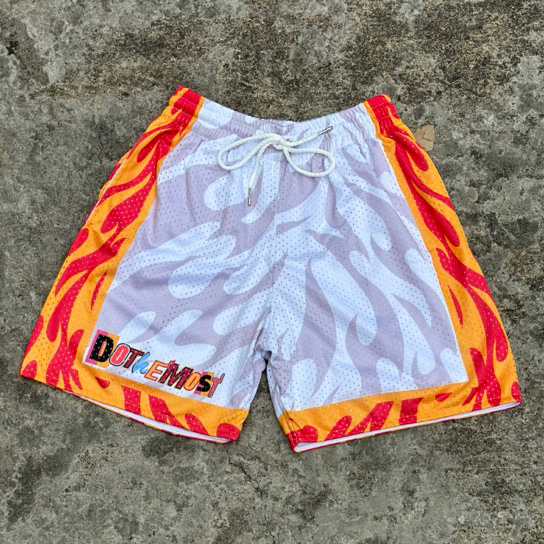 Do The Most Flame Contrast Print Mesh Pocket Shorts