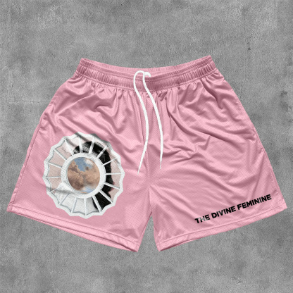 Rapper The Divine Feminine Print Mesh Drawstring Shorts