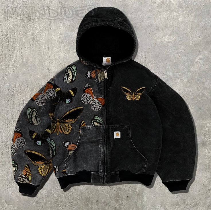 Vintage Butterfly Washed Distressed Zipper Thickened Jacket