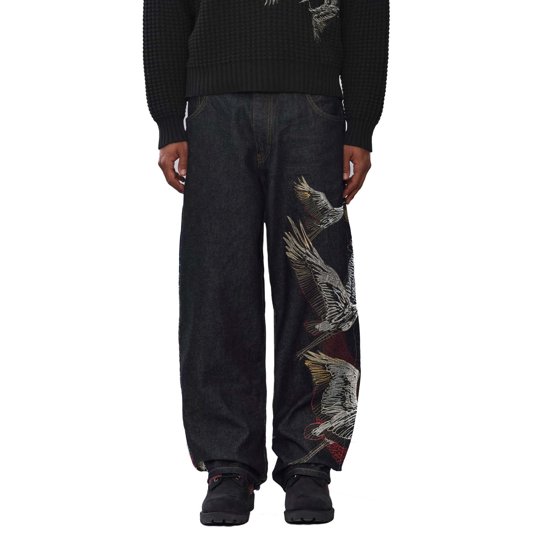 14,5oz denim / 100% cotton / embroidery on front and back / embroidered leather patch / wash inside out / straight fit / fits true to size