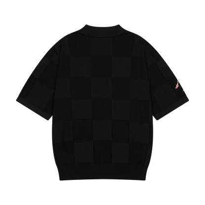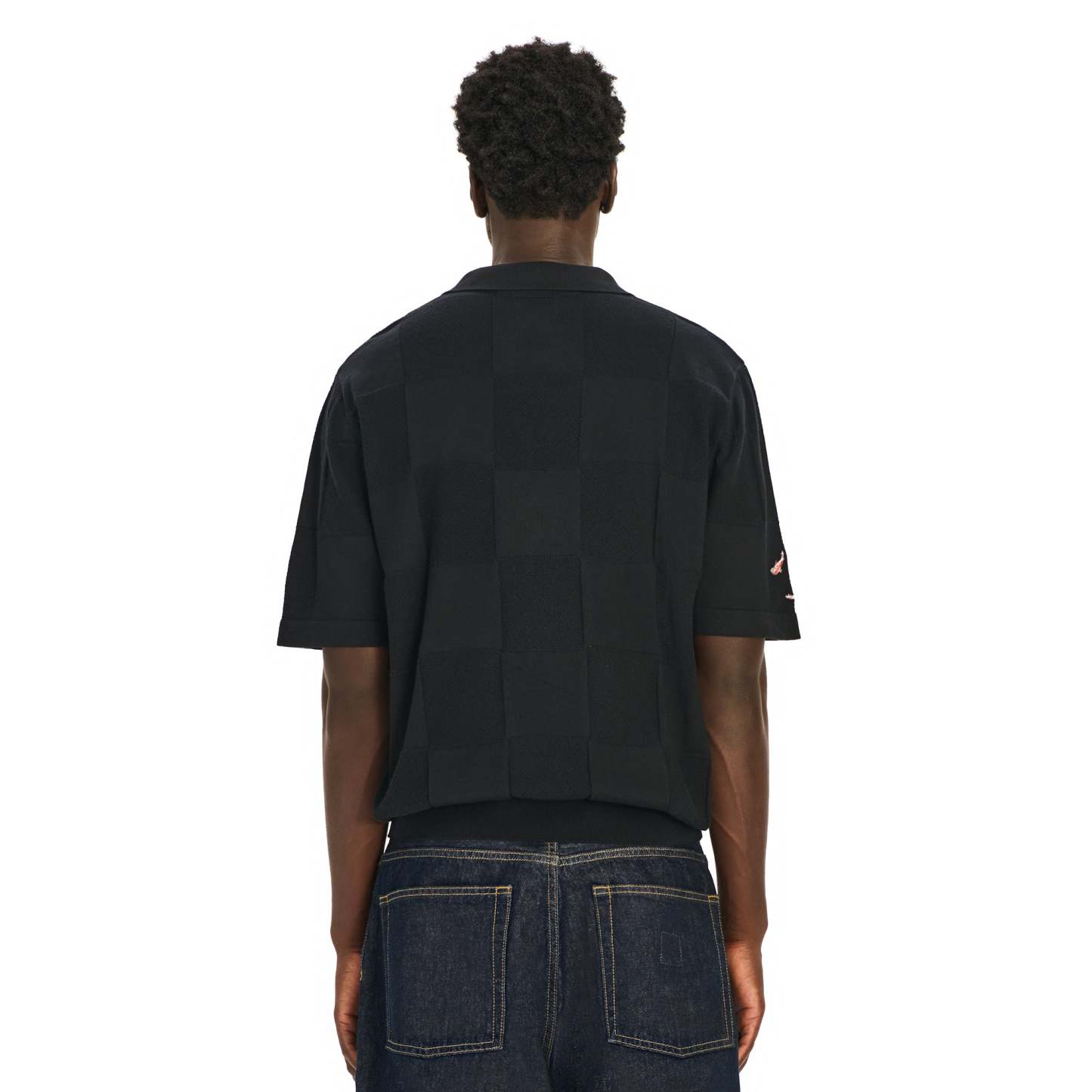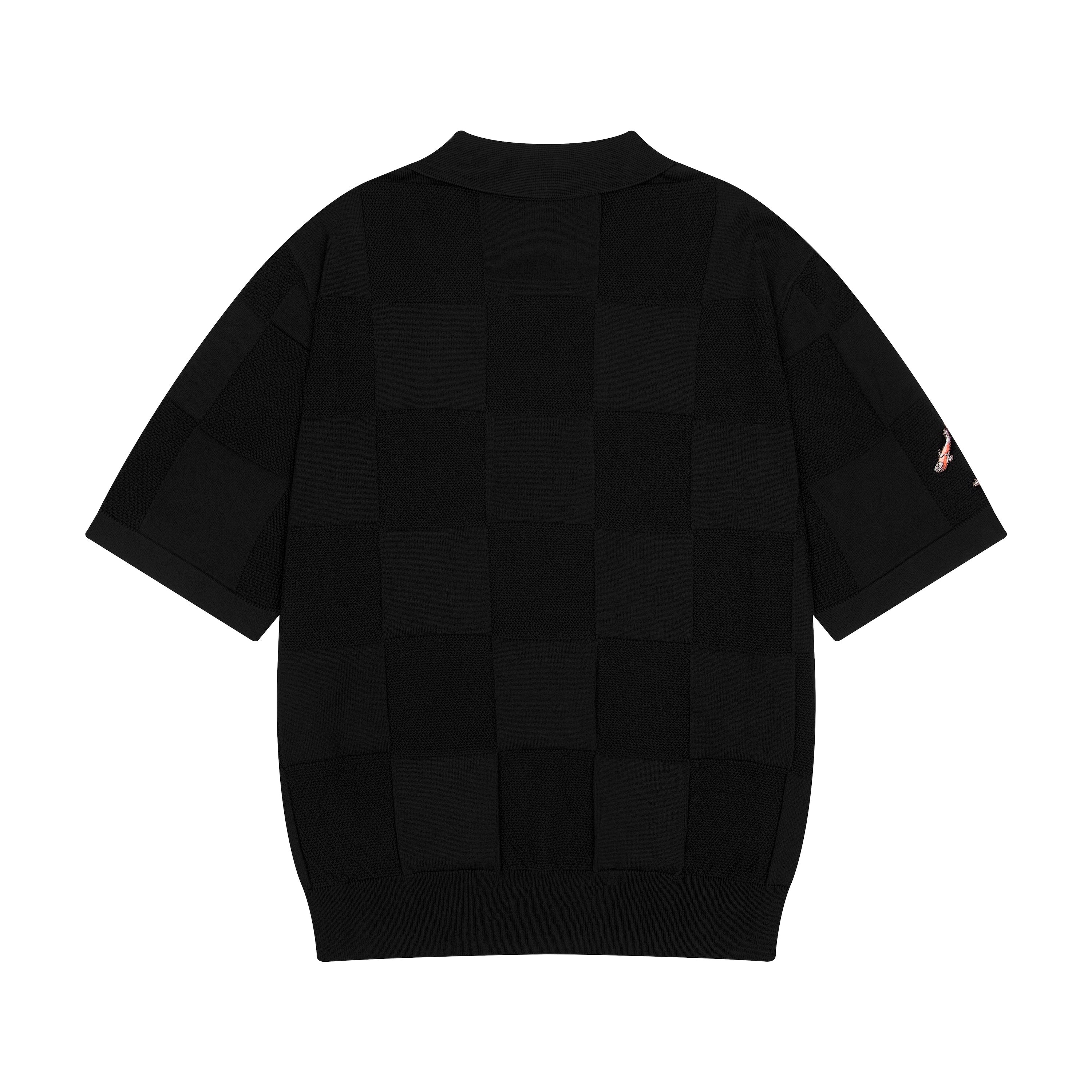 100% cotton / checkered knit pattern / embroidery on front and sleeve / custom buttons / fits true to size