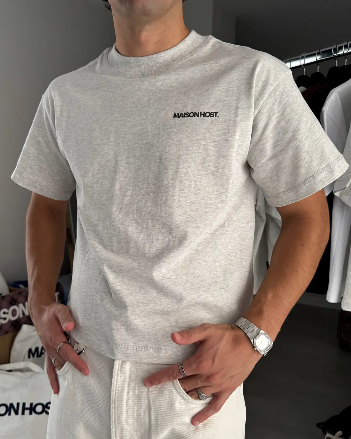 'MAISON HOST' white lettering print on the front.