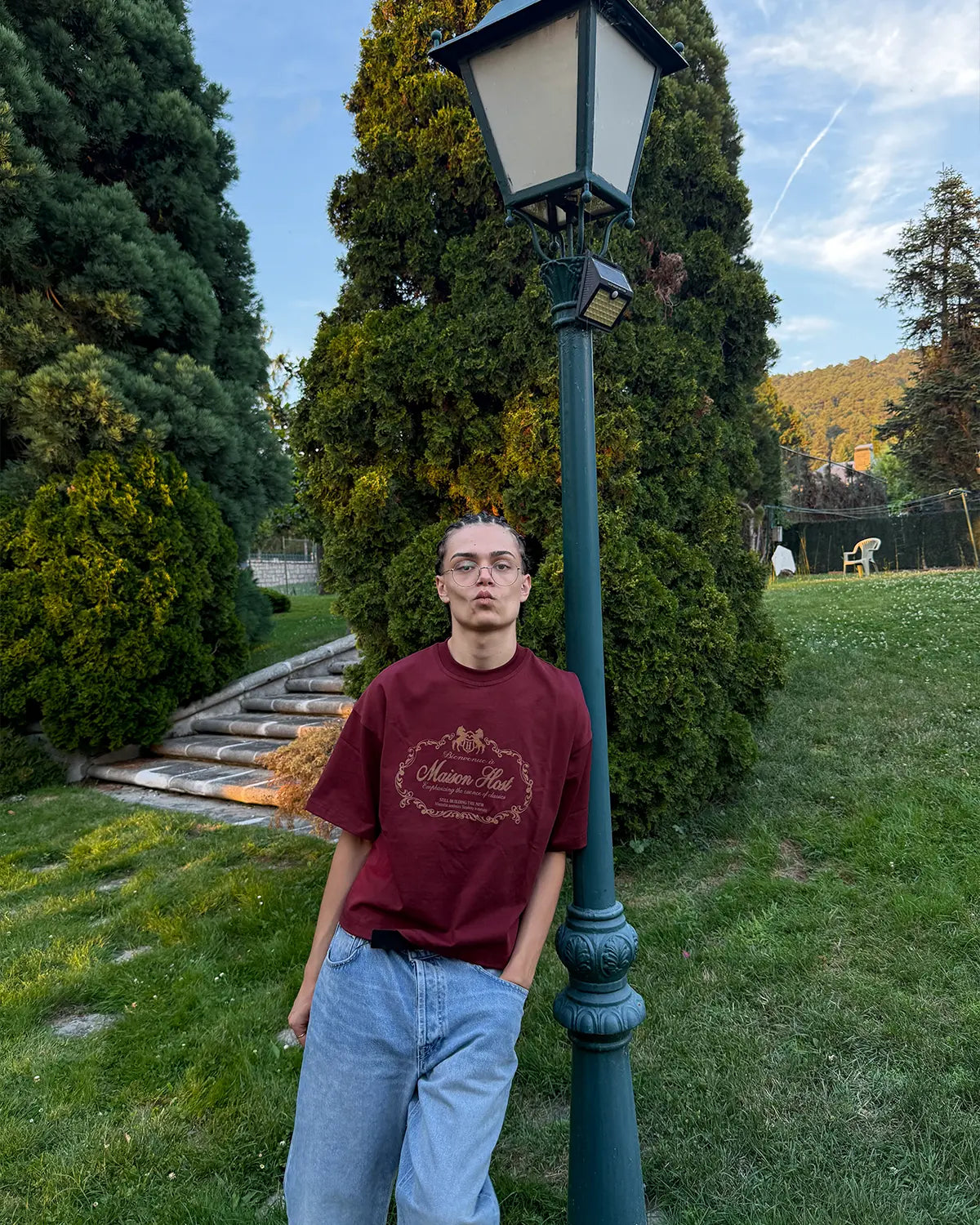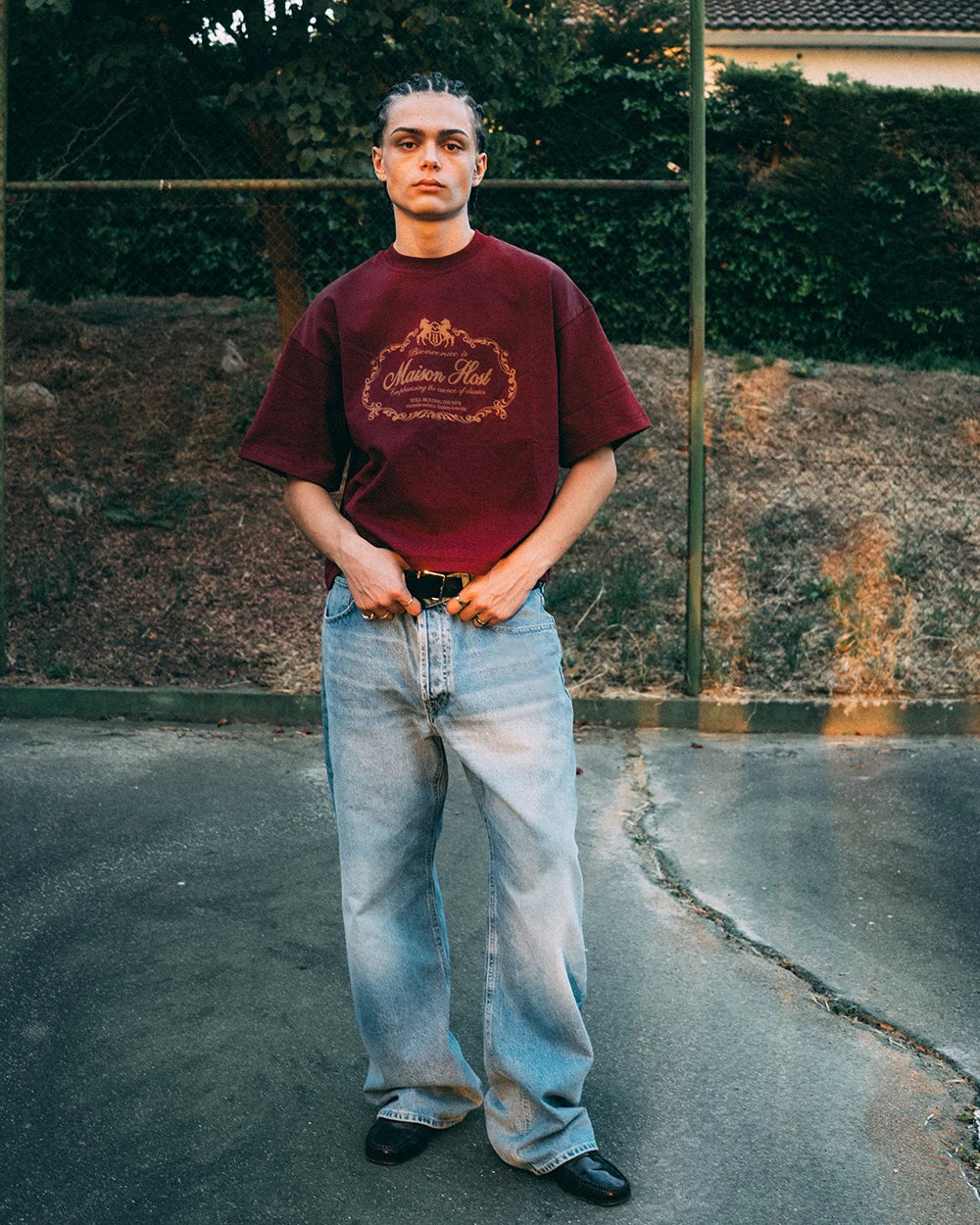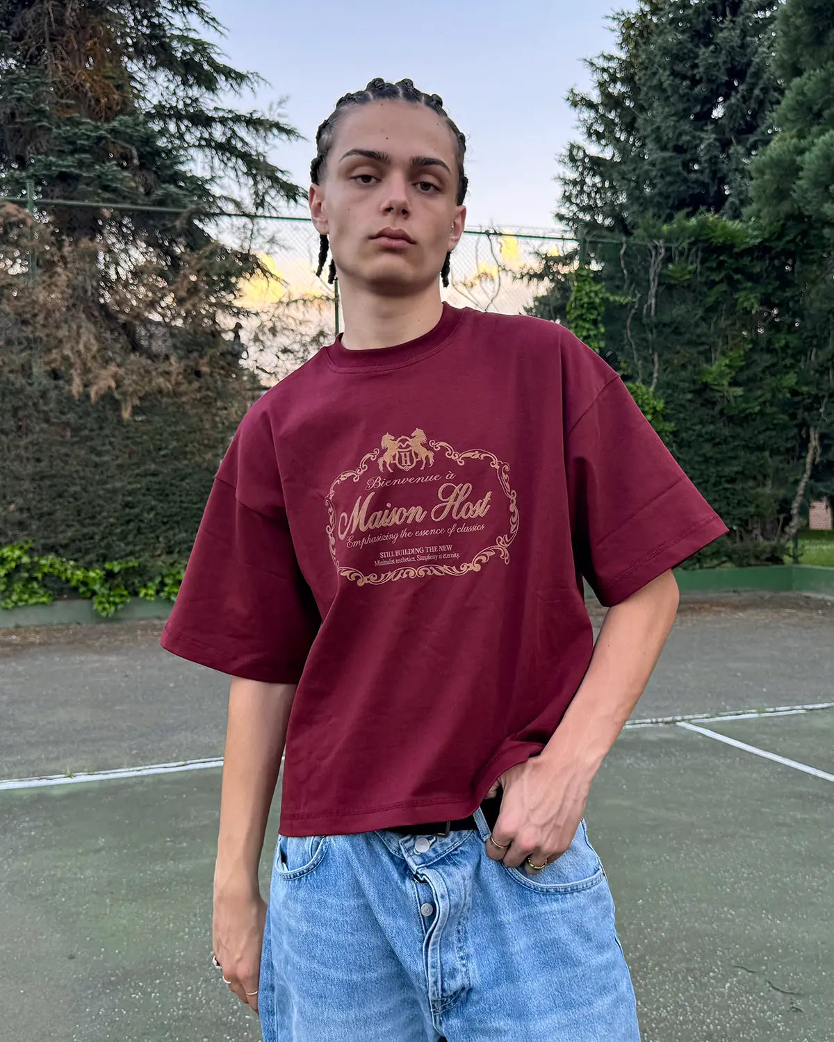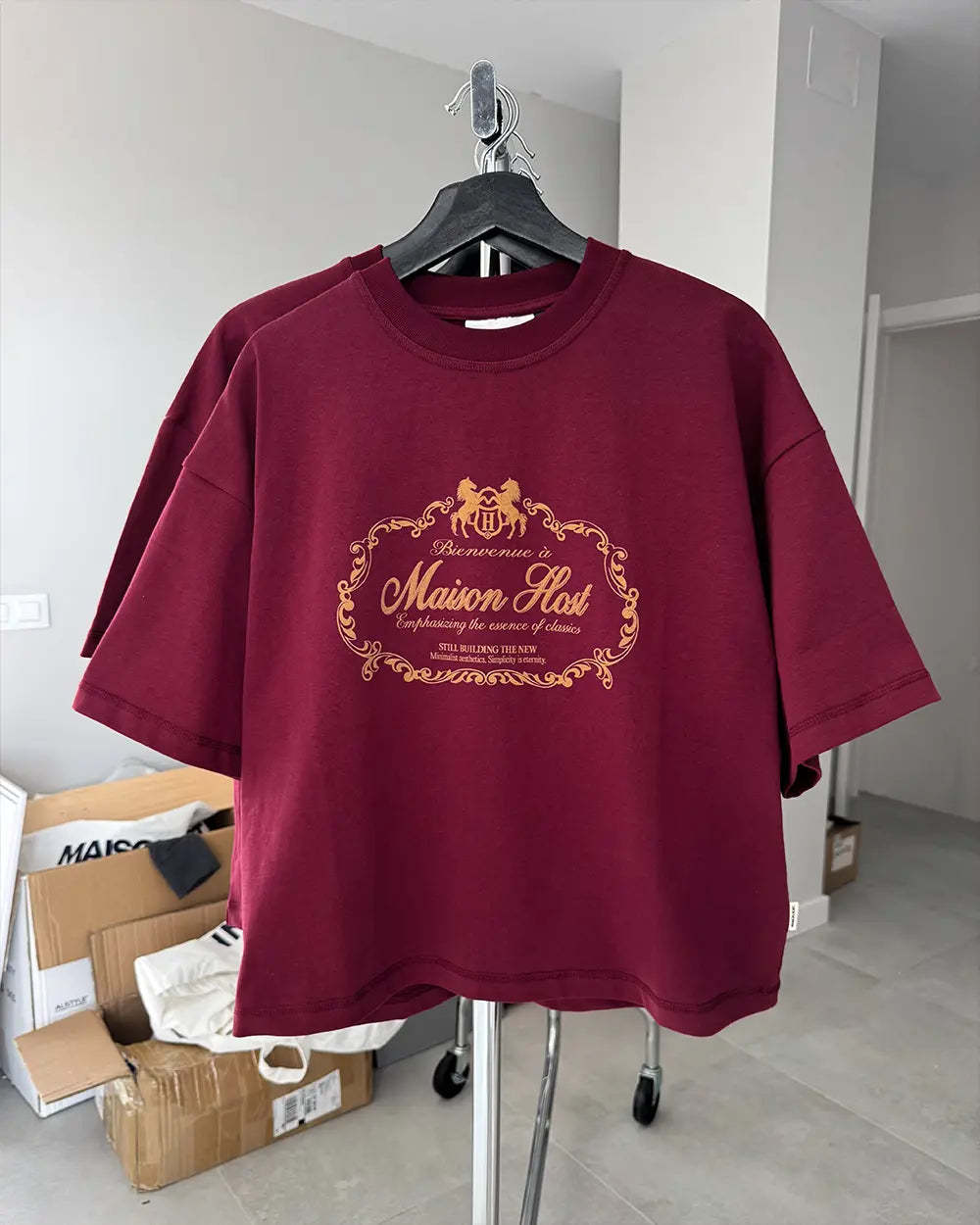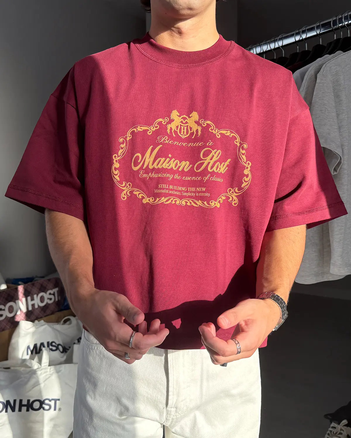 'Bienvenue a la Maison' Golden Yellow Digital printed on the front. 'MAISONHOST®' cotton tag sewn on the left side of the T-shirt.