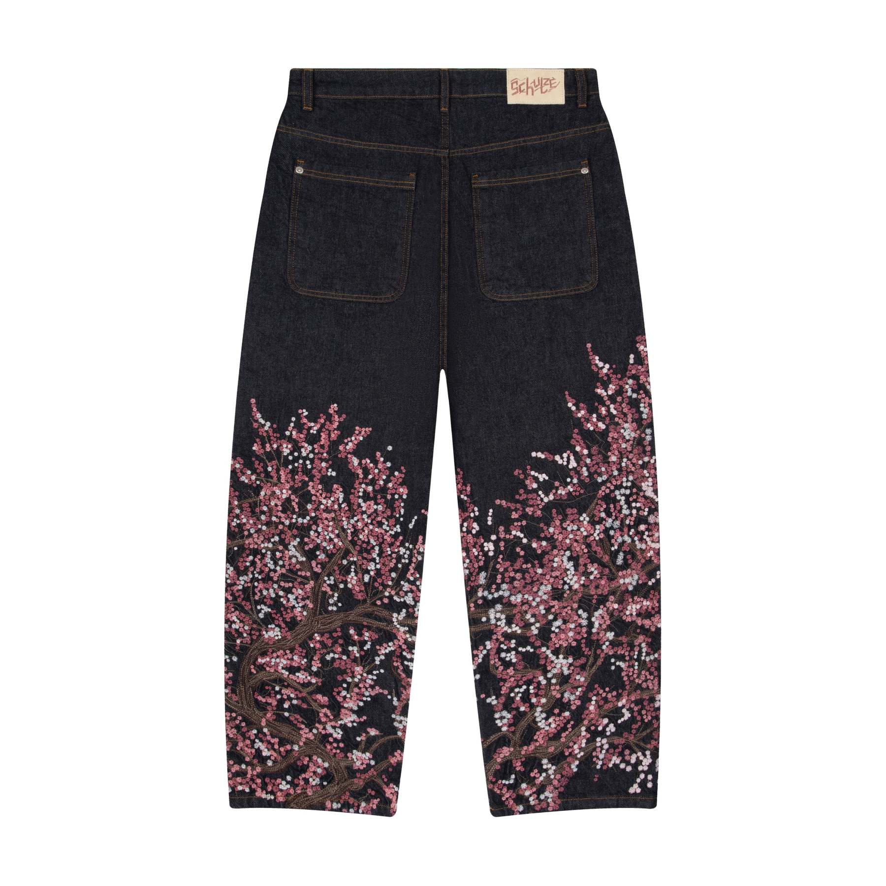 14,5oz denim / 100% cotton / embroidery on front and back / embroidered leather patch / wash inside out / straight fit / fits true to size