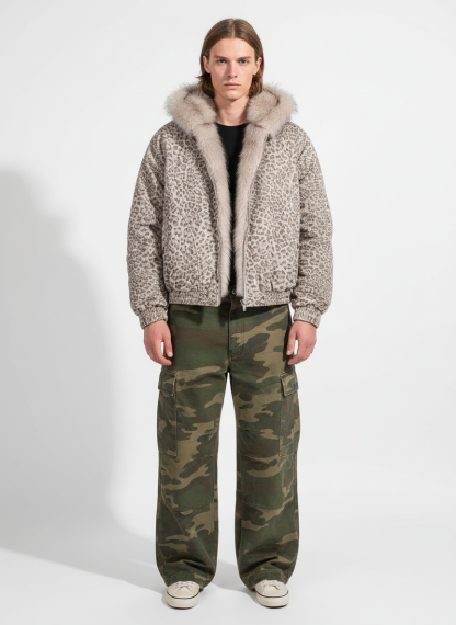 Cotton Cheetah Print Mink Fur Hooded Jacket - 2270