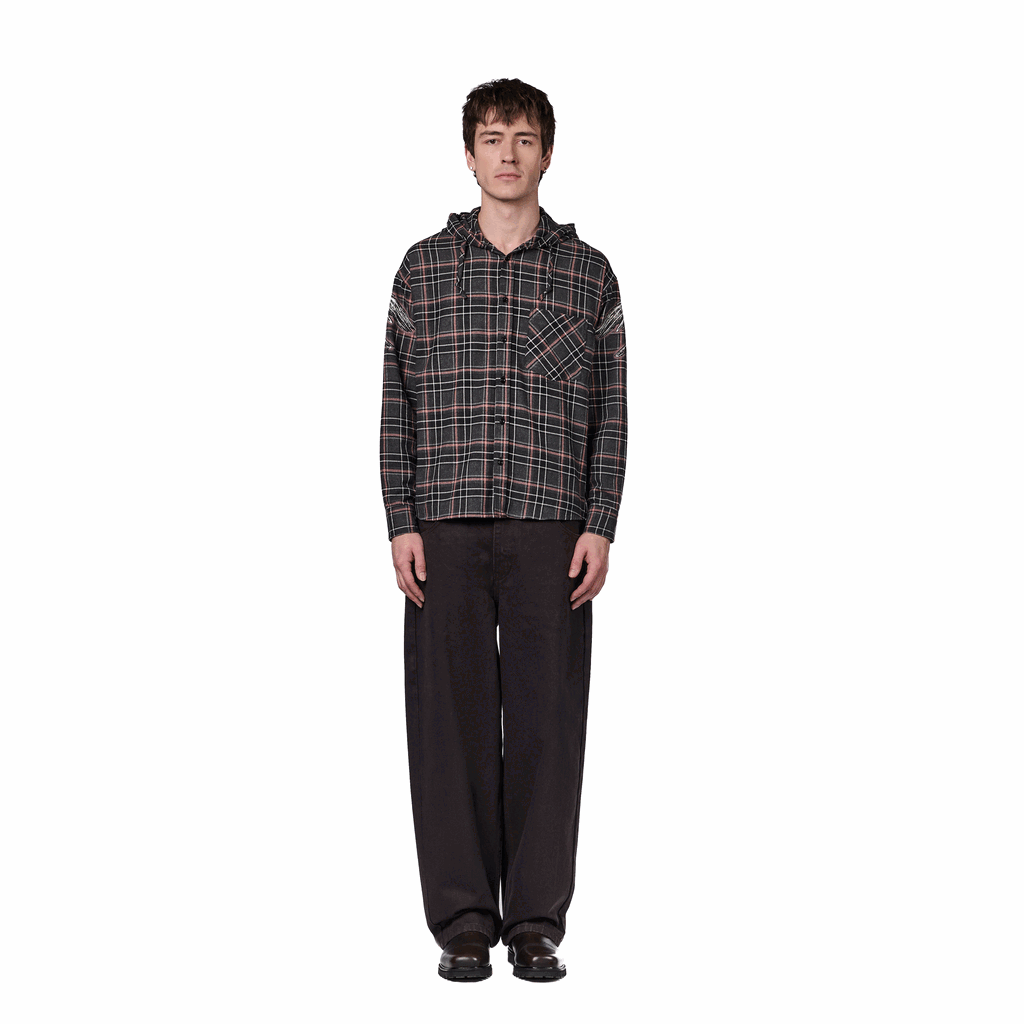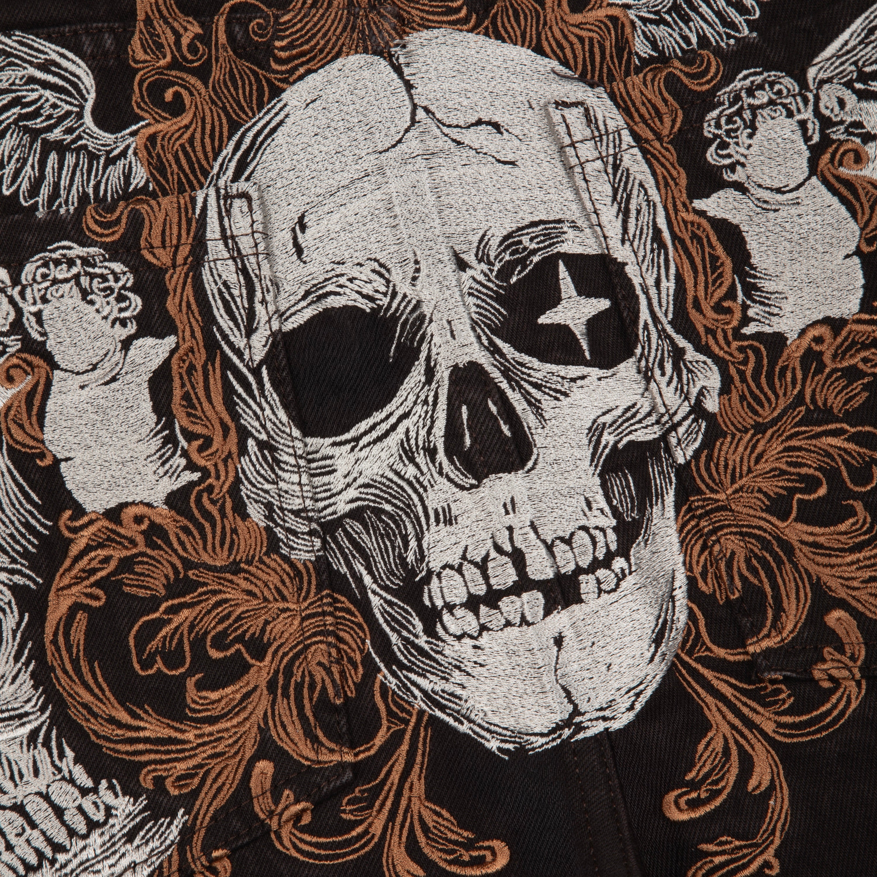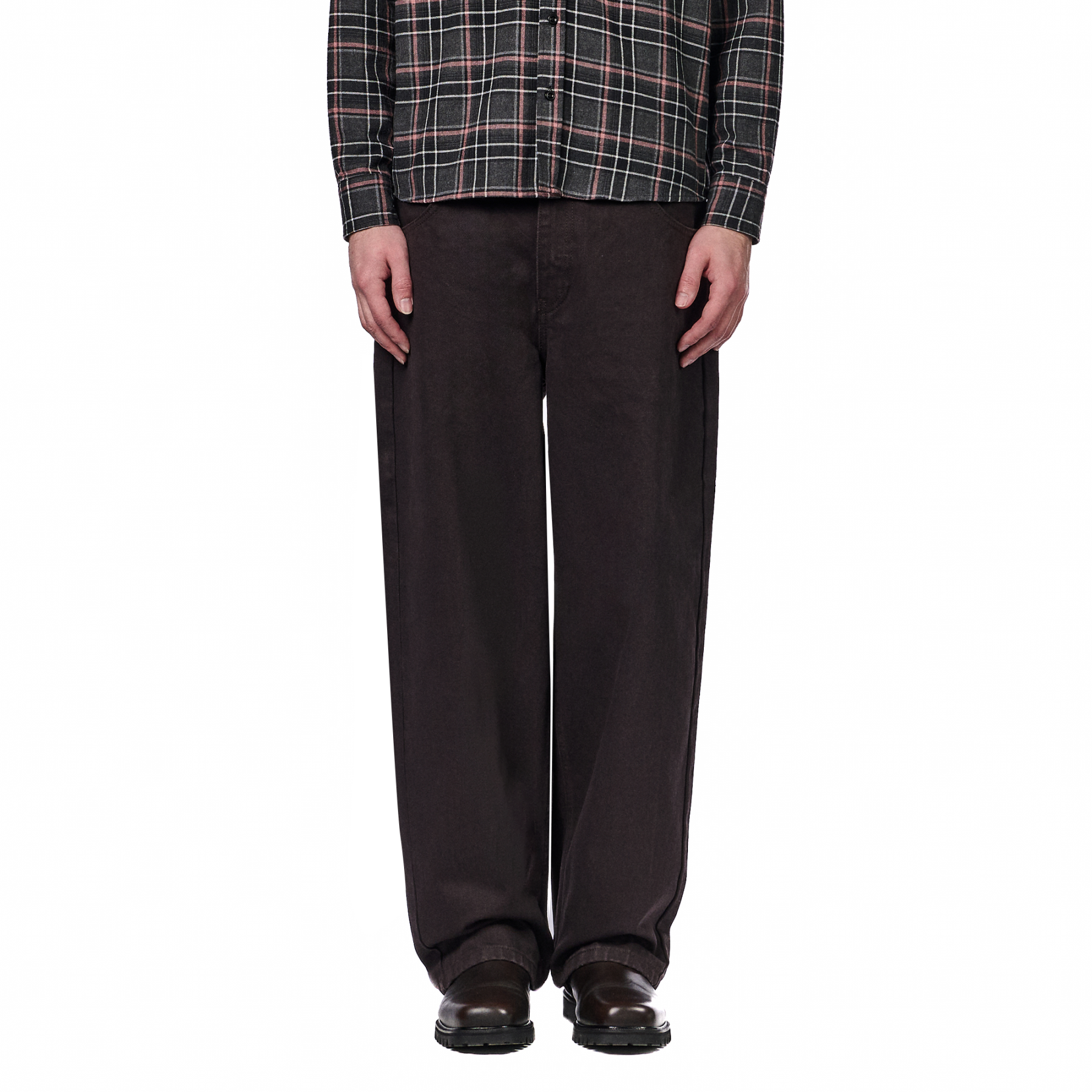 15oz denim / 100% cotton / embroidery on back / embroidered leather patch / wash inside out / balloon fit / fits true to size