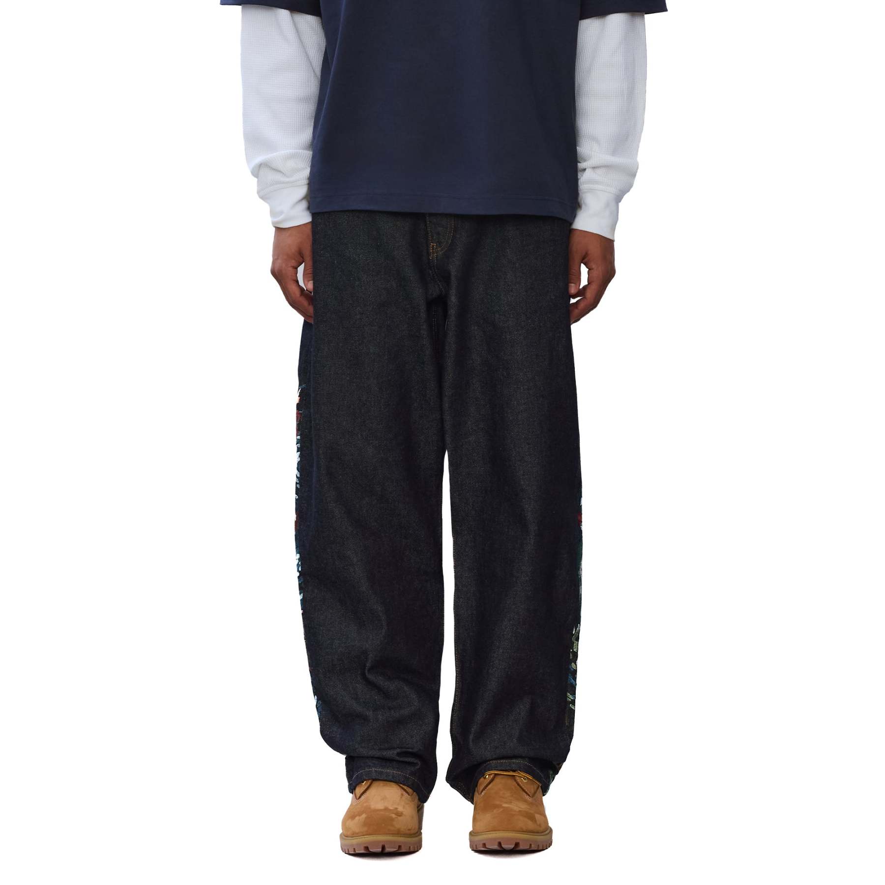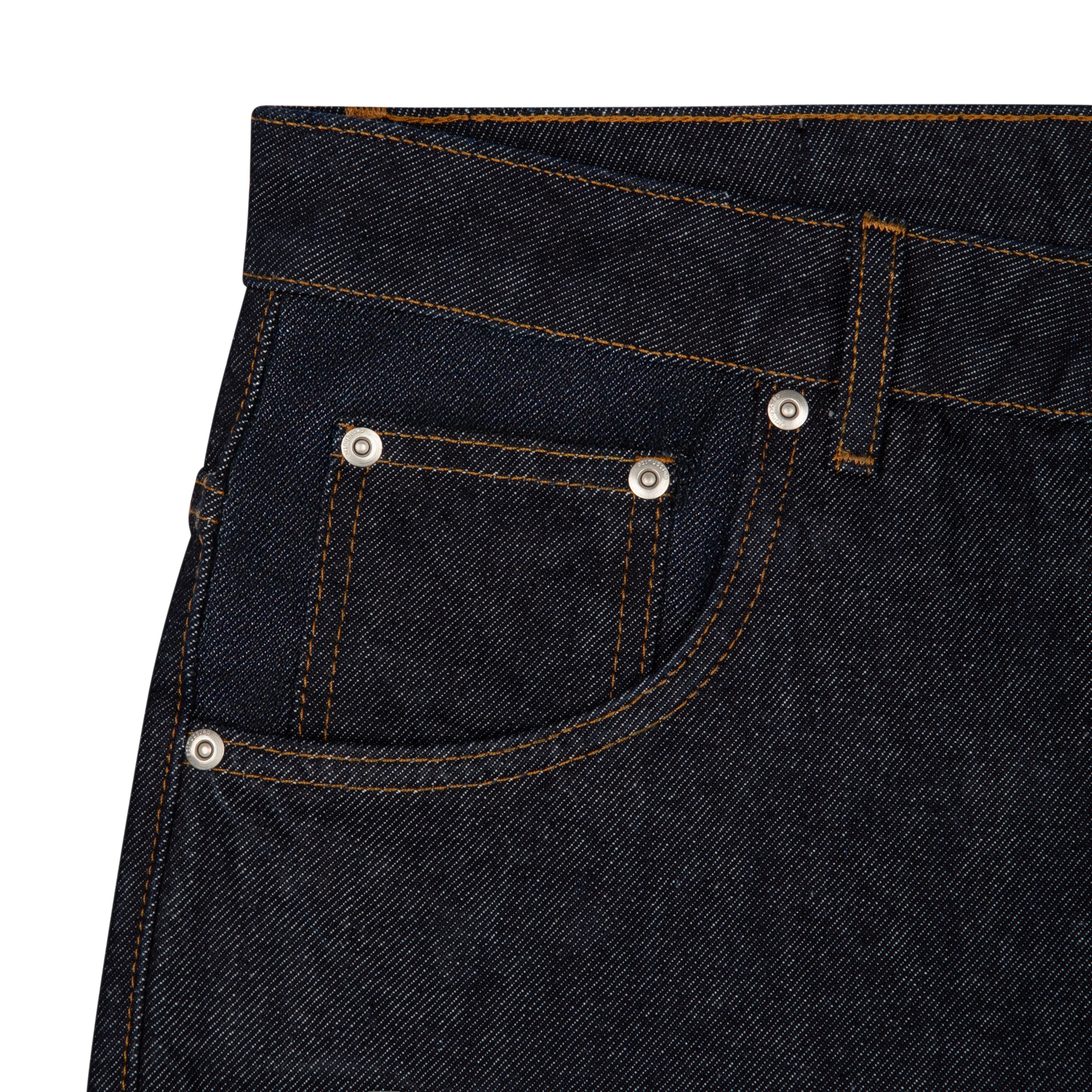 14,5oz denim / 100% cotton / embroidery on back / embroidered leather patch / wash inside out / straight fit / fits true to size