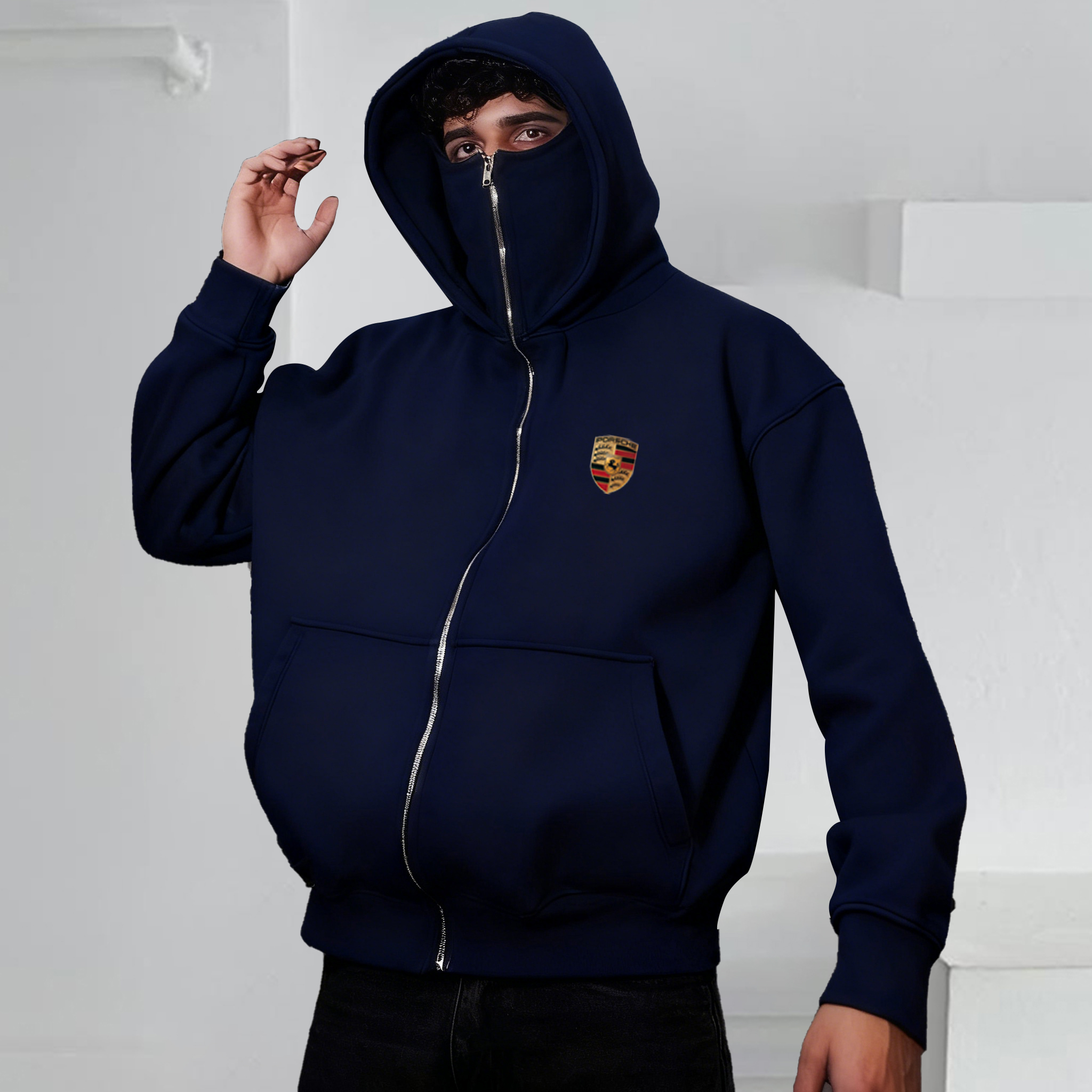 • Design Elements: Embossed logo on the back, hooded design, ribbed cuffs and hem