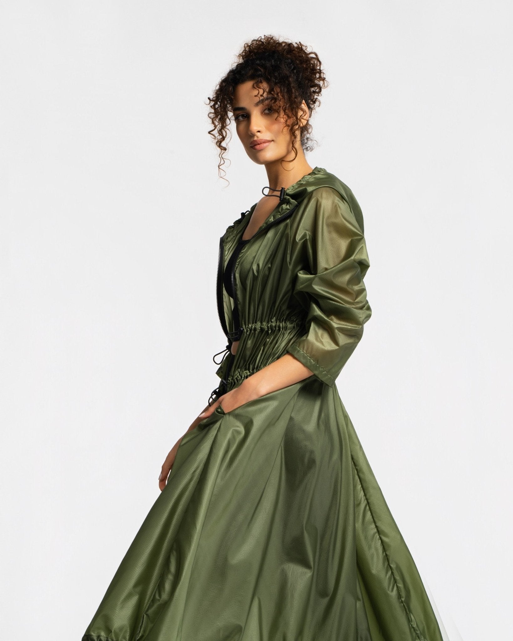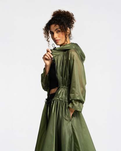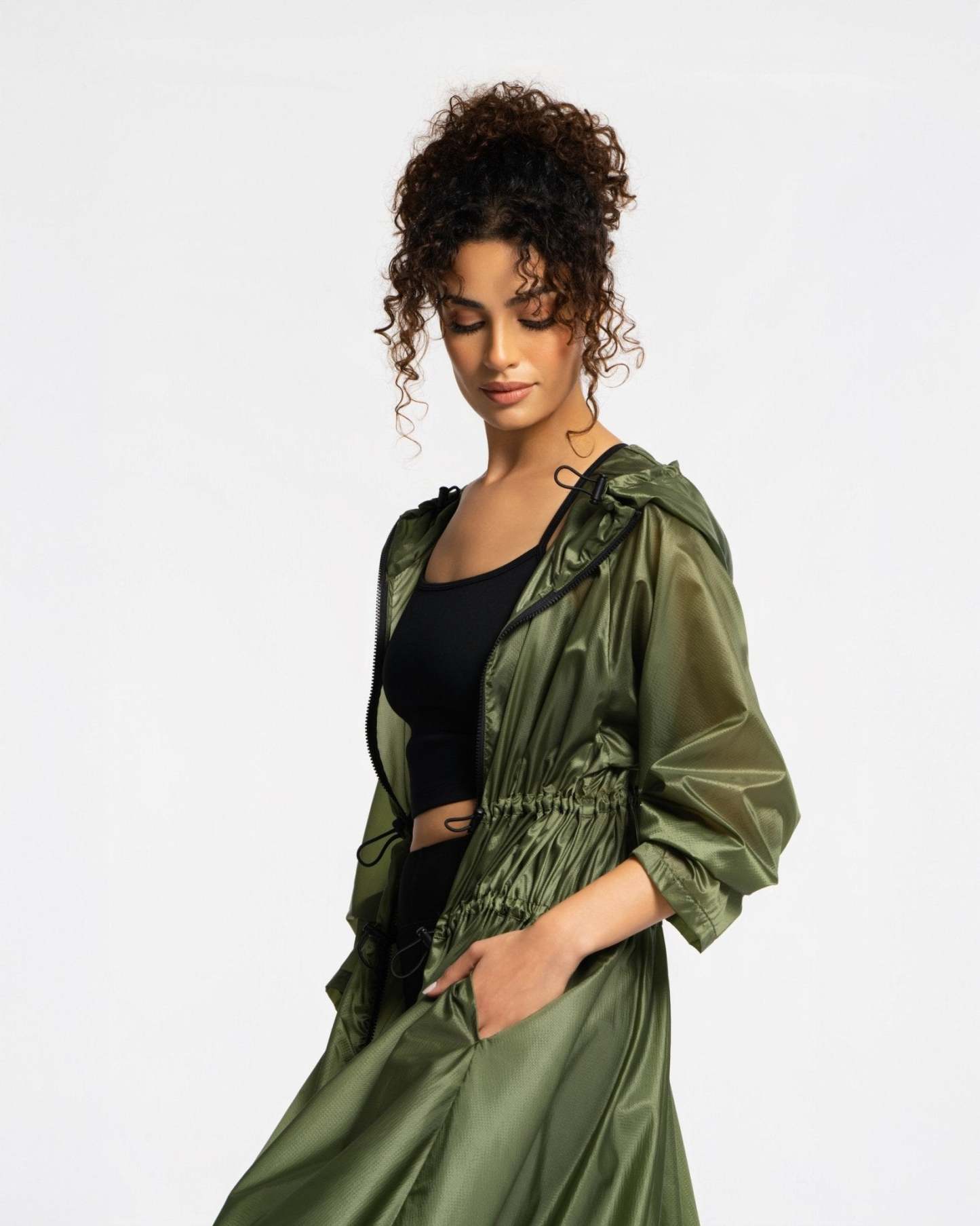 An iconic Kayanee piece that takes you from the gym to the street. Crafted from ultra-lightweight nylon, this windbreaker is designed with a fluid, high-volume silhouette that moves effortlessly with you. A double drawcord waist, and a long A-line hem give it a bold yet versatile edge. A true statement layer, functional and unmistakably Kayanee.