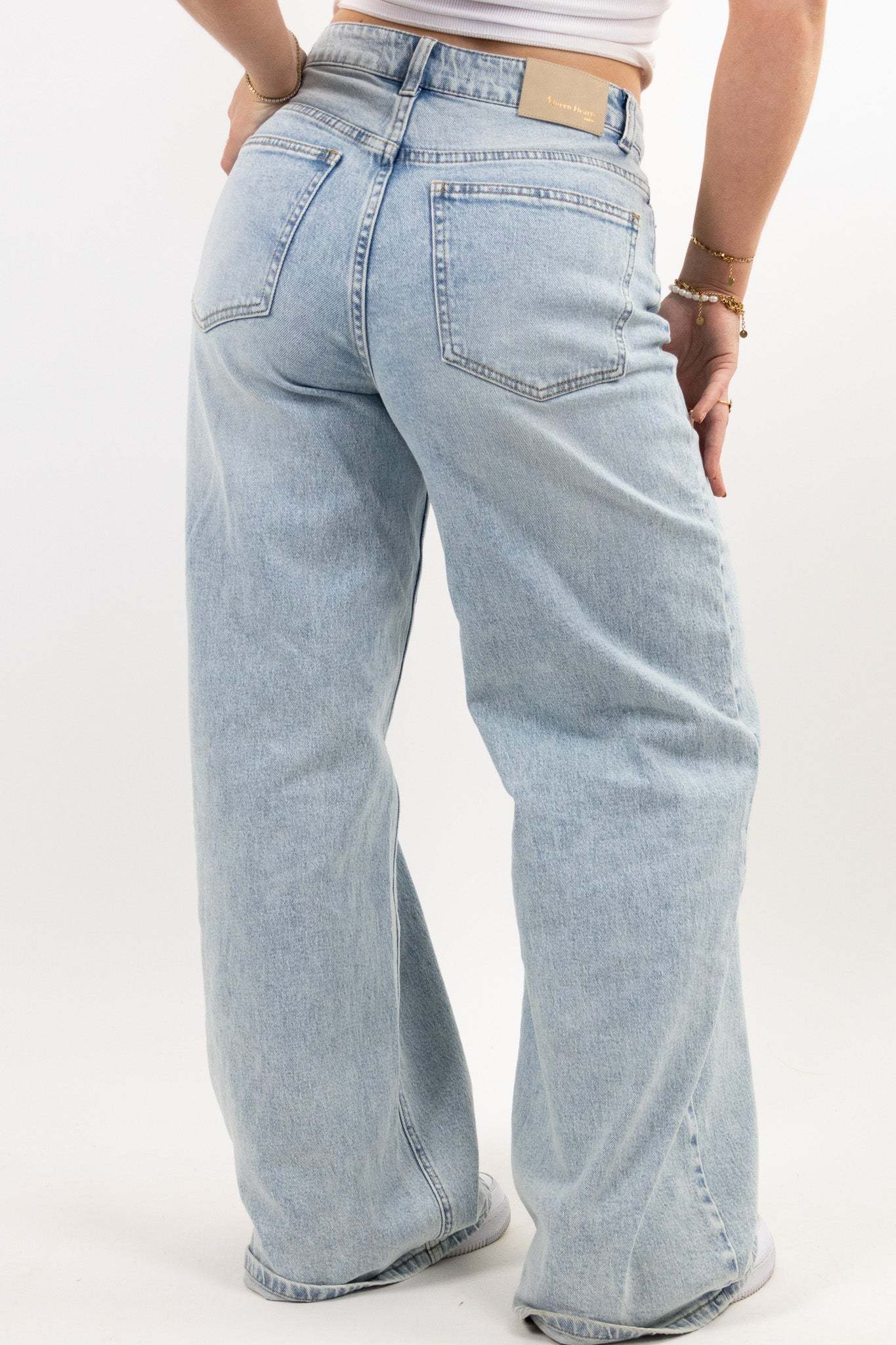 Details: Lace-up detail with rope laces, baggy fit, light wash