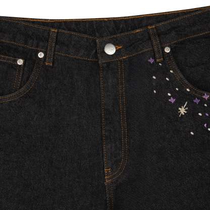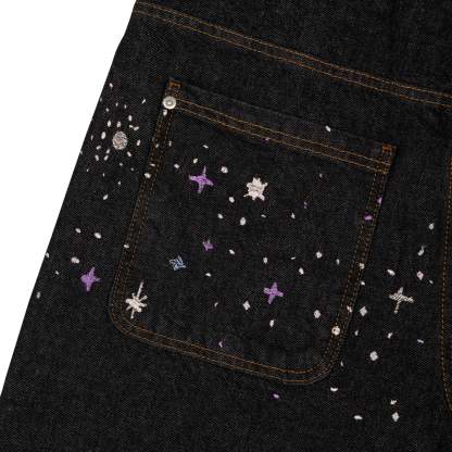 14,5oz denim / 100% cotton / embroidery on front and back / embroidered leather patch / wash inside out / straight fit / fits true to size