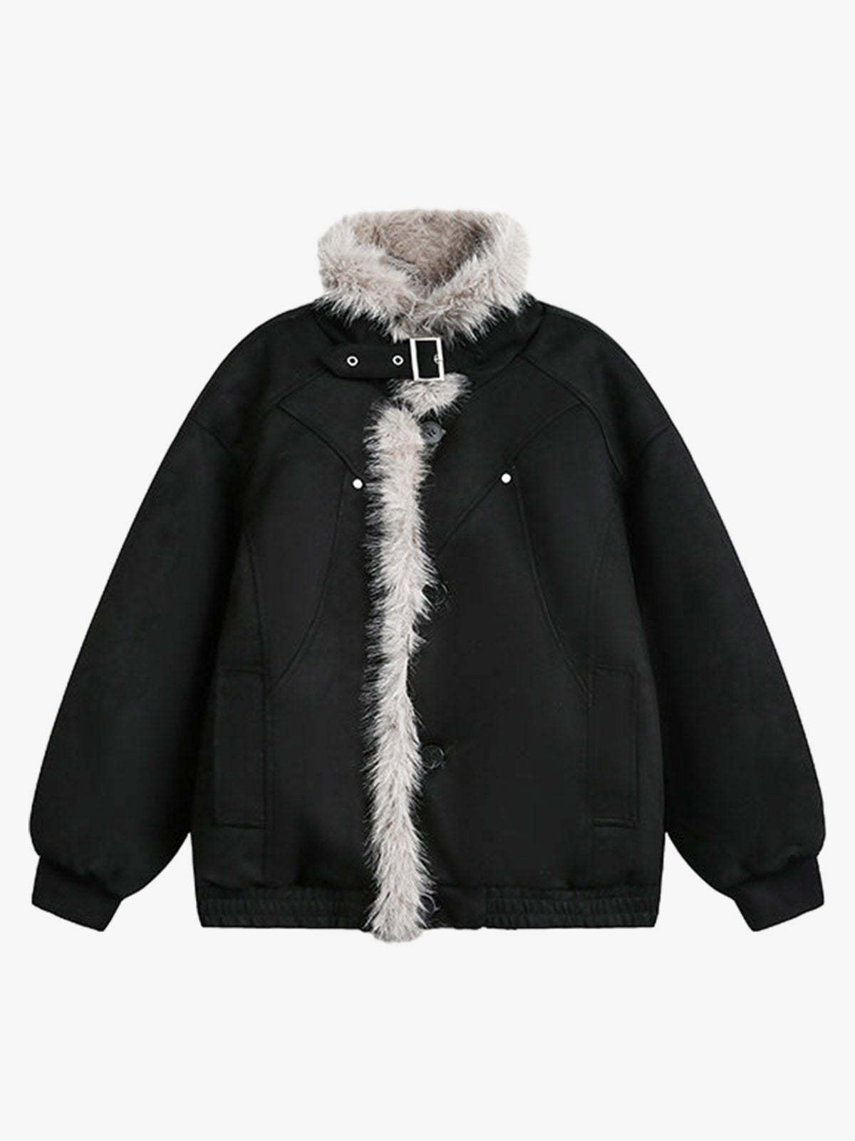 • Design Elements: Detachable faux fur trim on hood and front placket, button closure, functional pockets