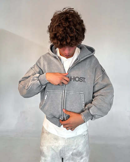 ERODE WAVE ZIPPED HOODIE GREY