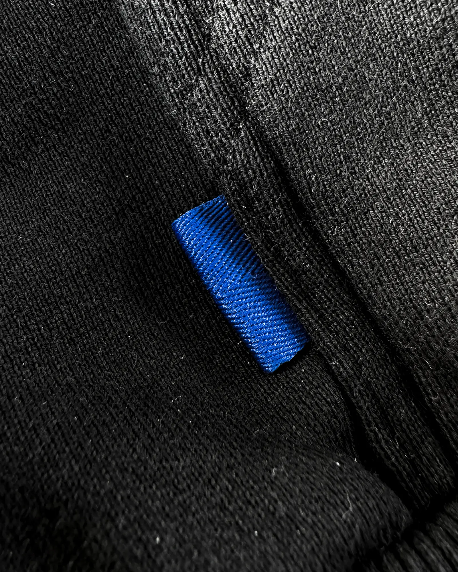 Washed black Host Lamaison zipped hoodie 'HOSTLAMAISON' grey logo printed on the front. Metal custom logo zipper puller. ©Host corporate color pocket label. Wavy shaped sleeves seams.