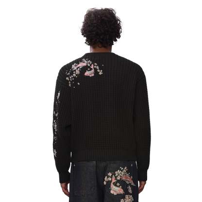 50% cotton 50% polyester / heavy weight knit / embroidery on back and sleeve / cropped fit / fits true to size / *may arrive after christmas