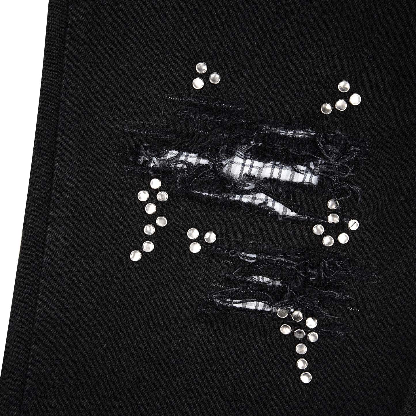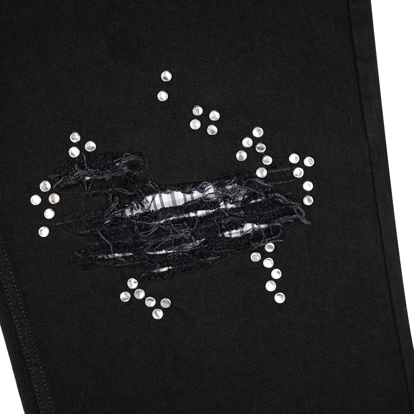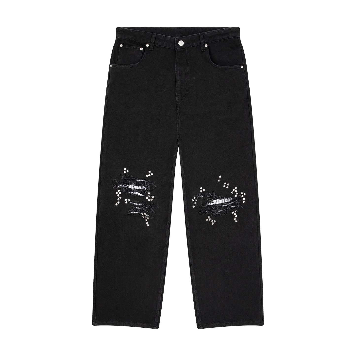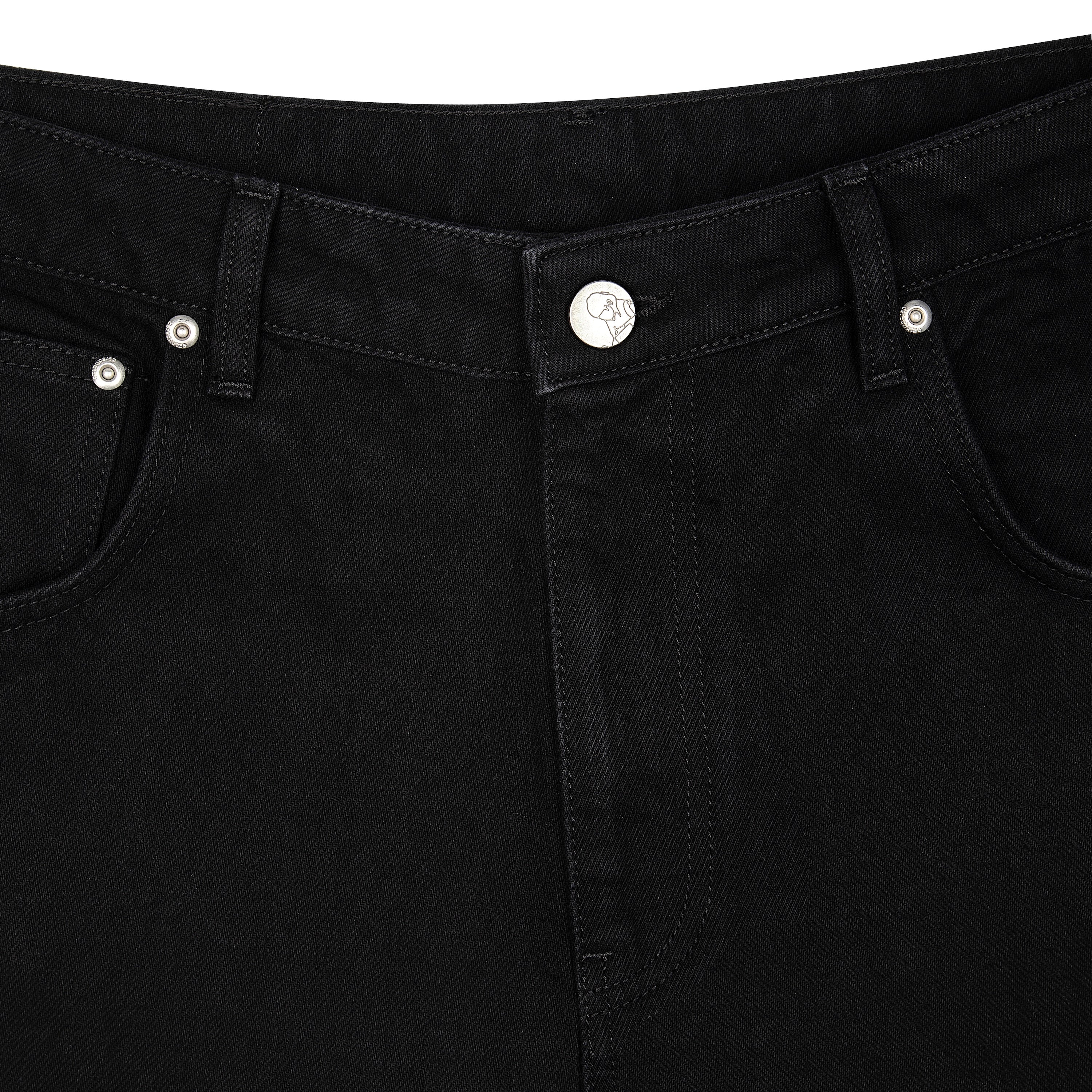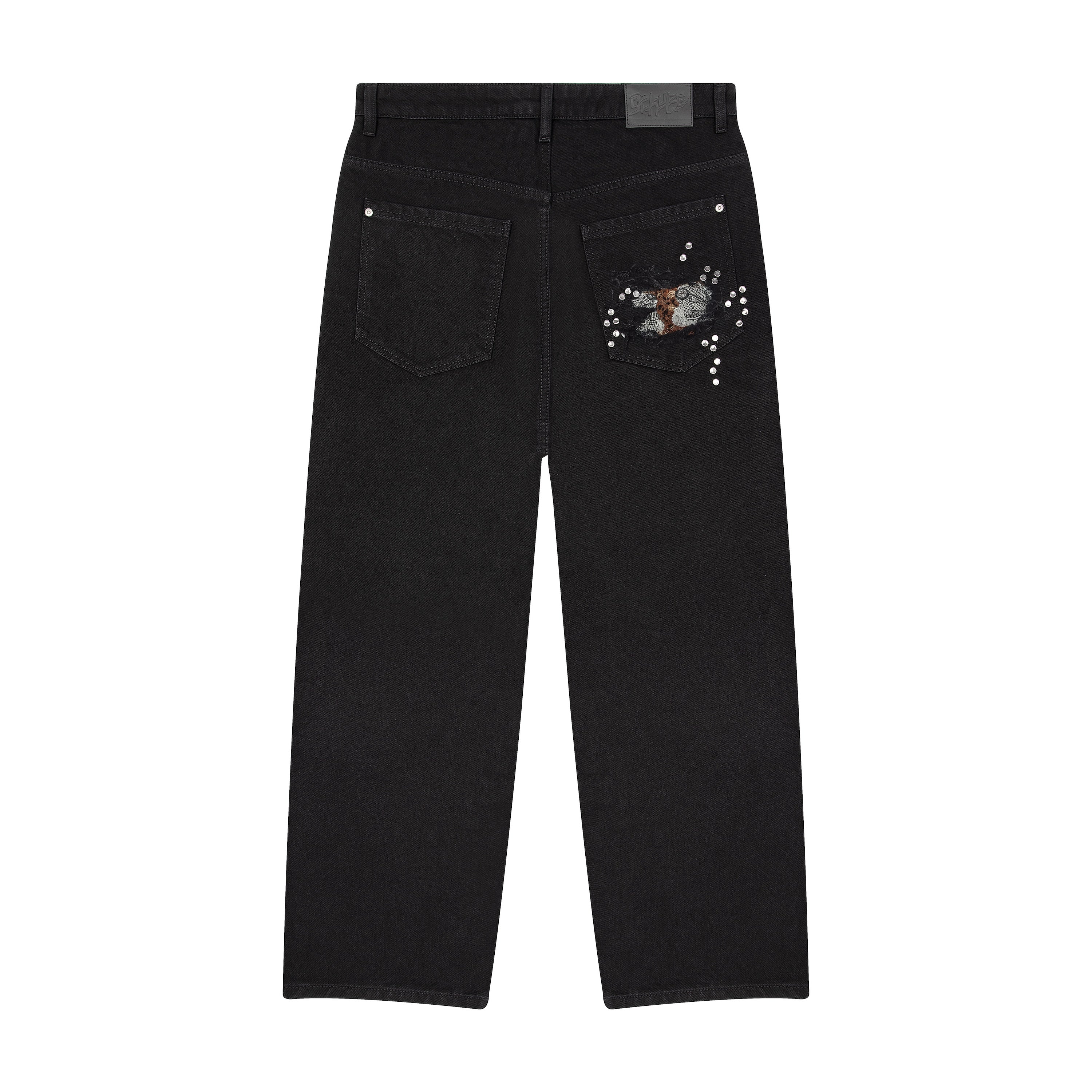 14,5oz denim / 100% cotton / distressed and patched at knees and back pocket / embroidery on back pocket patch / button studs at knees and back pocket / debossed printed leather patch / custom button / wash inside out / fits true to size / all profits will be donated