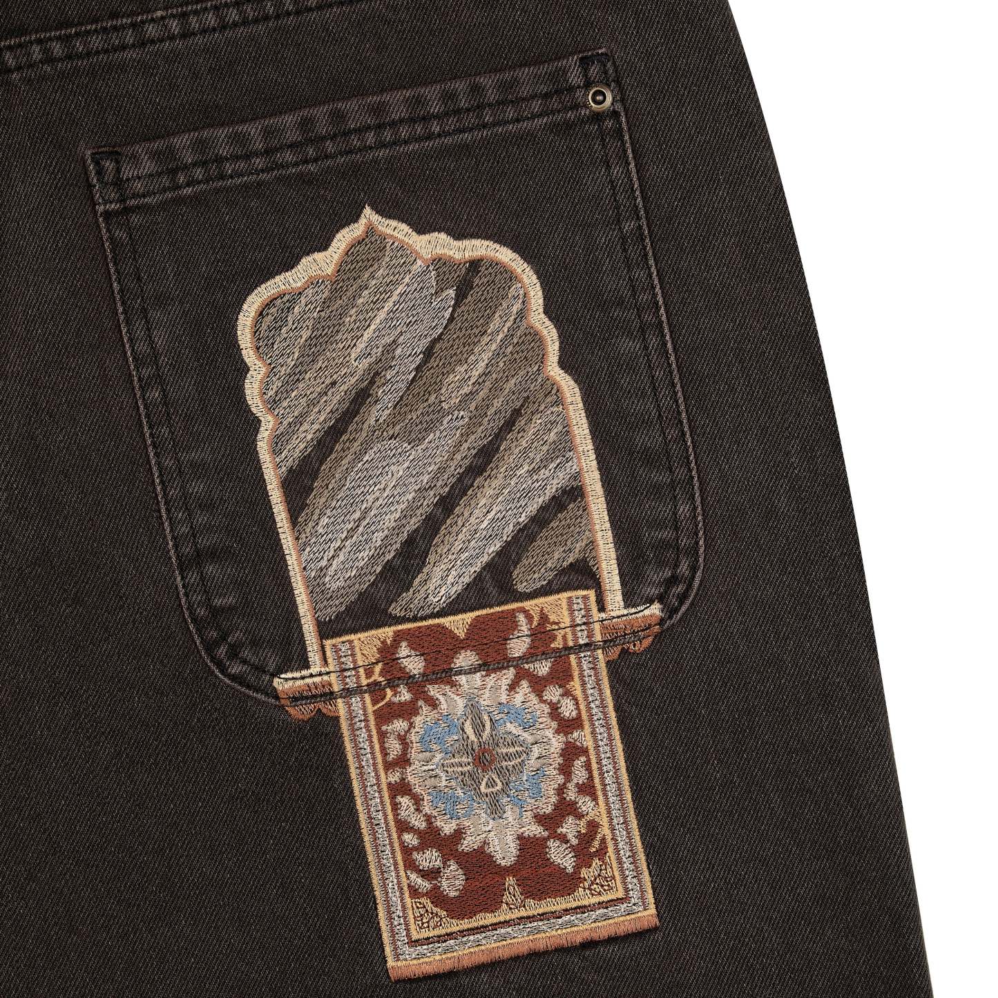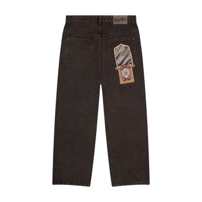 14,5oz denim / 100% cotton / pocket details on front / embroideries on front and back / debossed printed leather patch / custom button / fits true to size / all profits will be donated