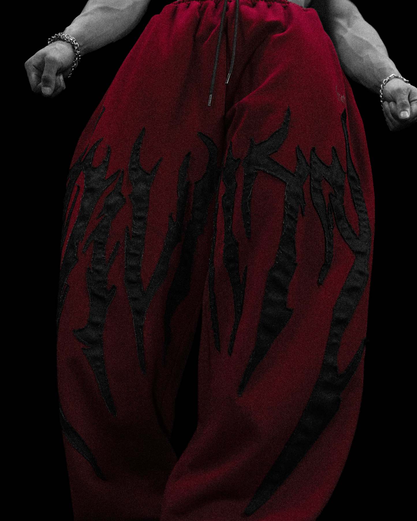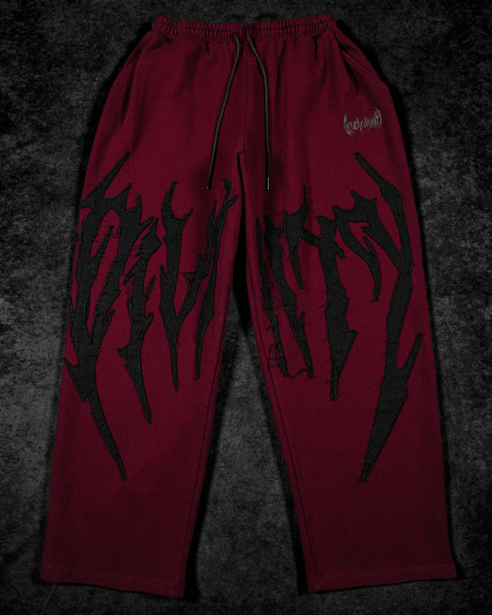 Destroyed Banana Shape sweatpants [CRIMSON]
