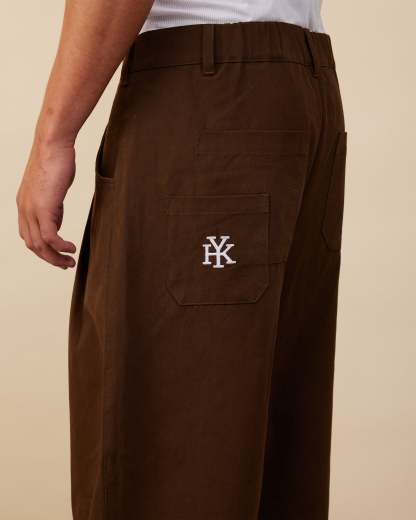 The Barrel Leg Pants are crafted from a mid-weight pleated cotton blend, offering structure with a relaxed barrel-leg fit. Designed for everyday wear, they feature double-layered back pockets and are finished with a signature embroidered logo.