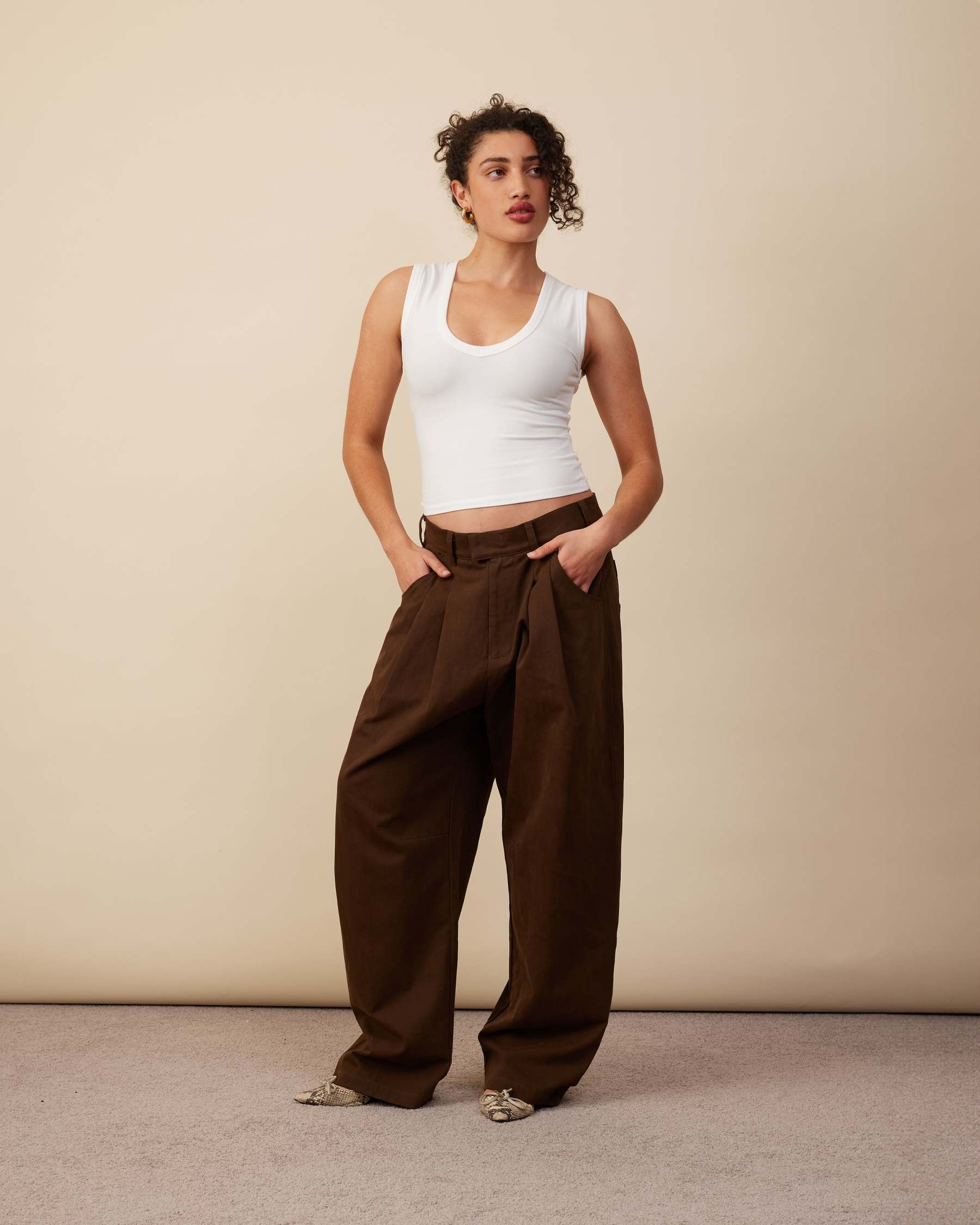 Barrel Leg Pants | Warm Brown
