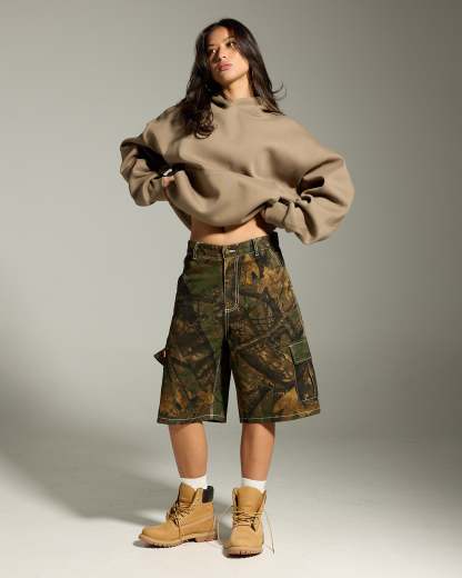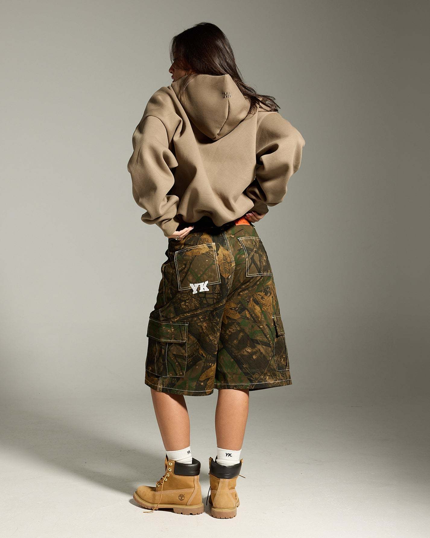 The Cargo Shorts are lightweight and high-rise with a standard fit. Size up for a more relaxed, low-waist look. Designed with belt loops, side cargo pockets, a YK embroidered logo on the back pocket, and finished with a highlight orange leather waistband patch.