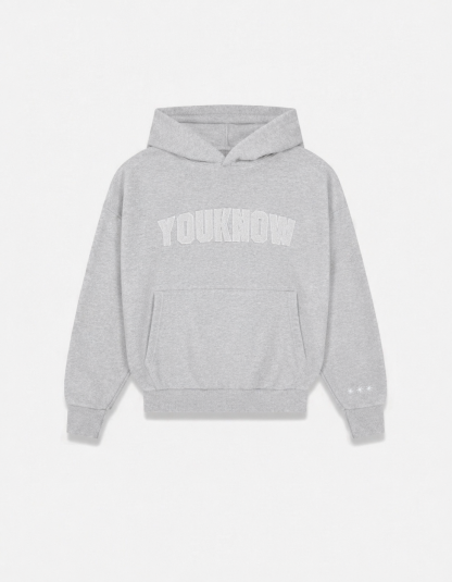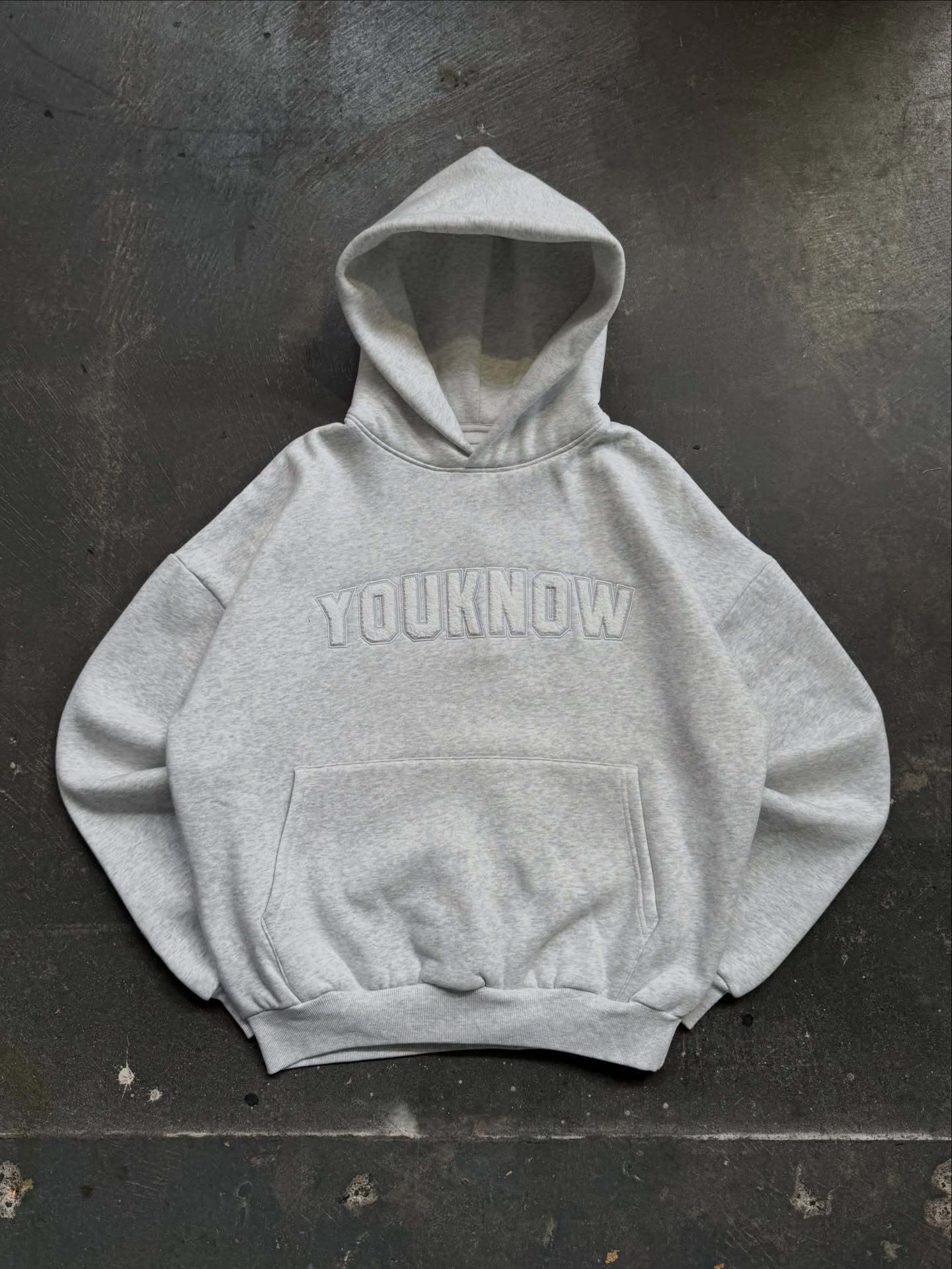 The Chenille Hoodie is a double-lined piece bonded for a structured, boxy fit. It features outer arm seams and a chenille logo across the front.