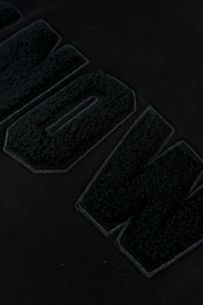 The Chenille Hoodie is a double-lined piece bonded for a structured, boxy fit. It features outer arm seams and a chenille logo across the front.