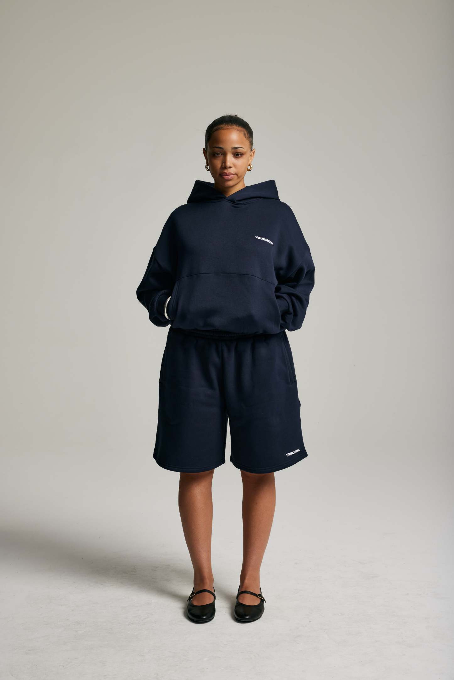 The Core Box Hoodie features a boxy fit that’s slightly wider and shorter than the Standard Hoodie. It includes a subtle embroidered chest logo and a classic kangaroo pocket, crafted from soft mid-weight fabric for everyday comfort.