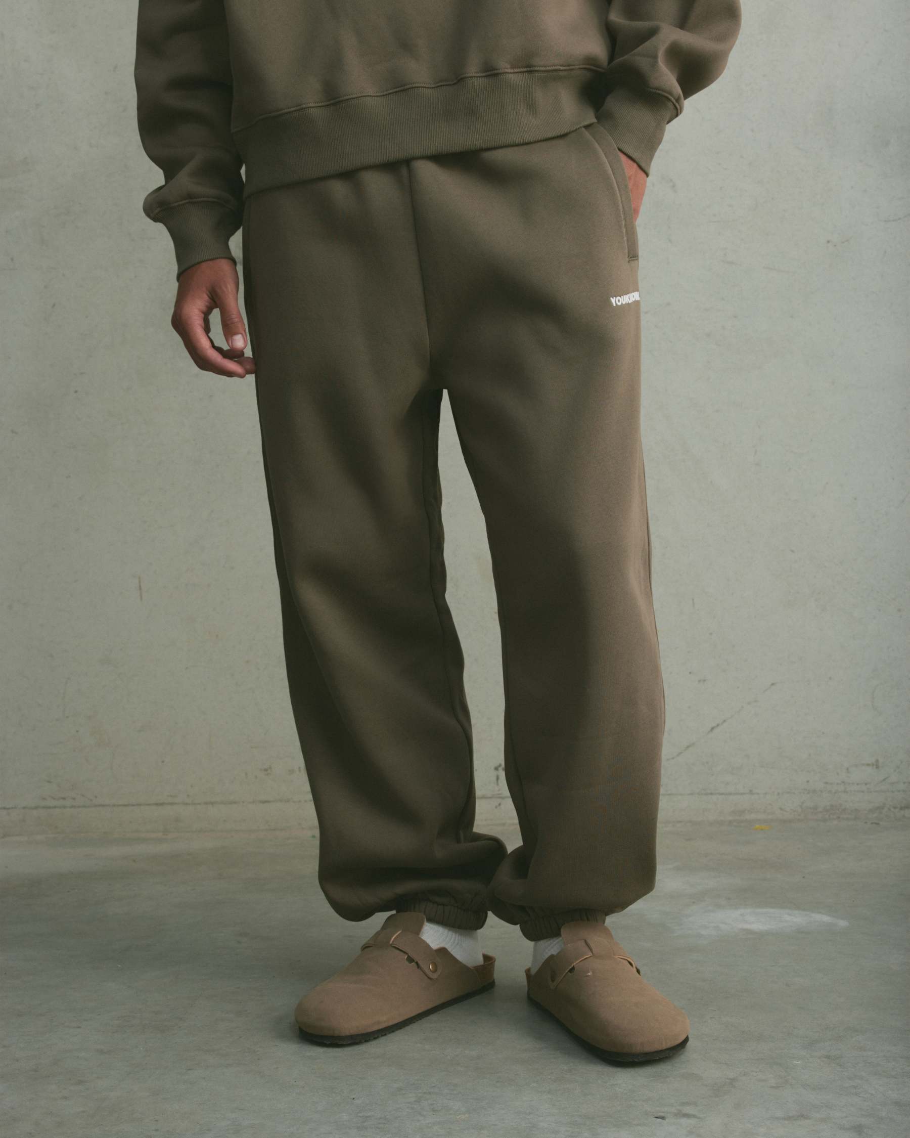 The Core Cuffed Sweatpants feature a relaxed fit with elasticated cuffs, finished with side pockets and a subtle embroidered logo for an easy, everyday essential.