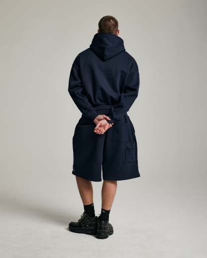 The Core Oversized Shorts features a boxy longline fit. It includes a subtle embroidered lower leg logo and features carpenter style pockets, crafted from soft mid-weight fabric for everyday comfort.