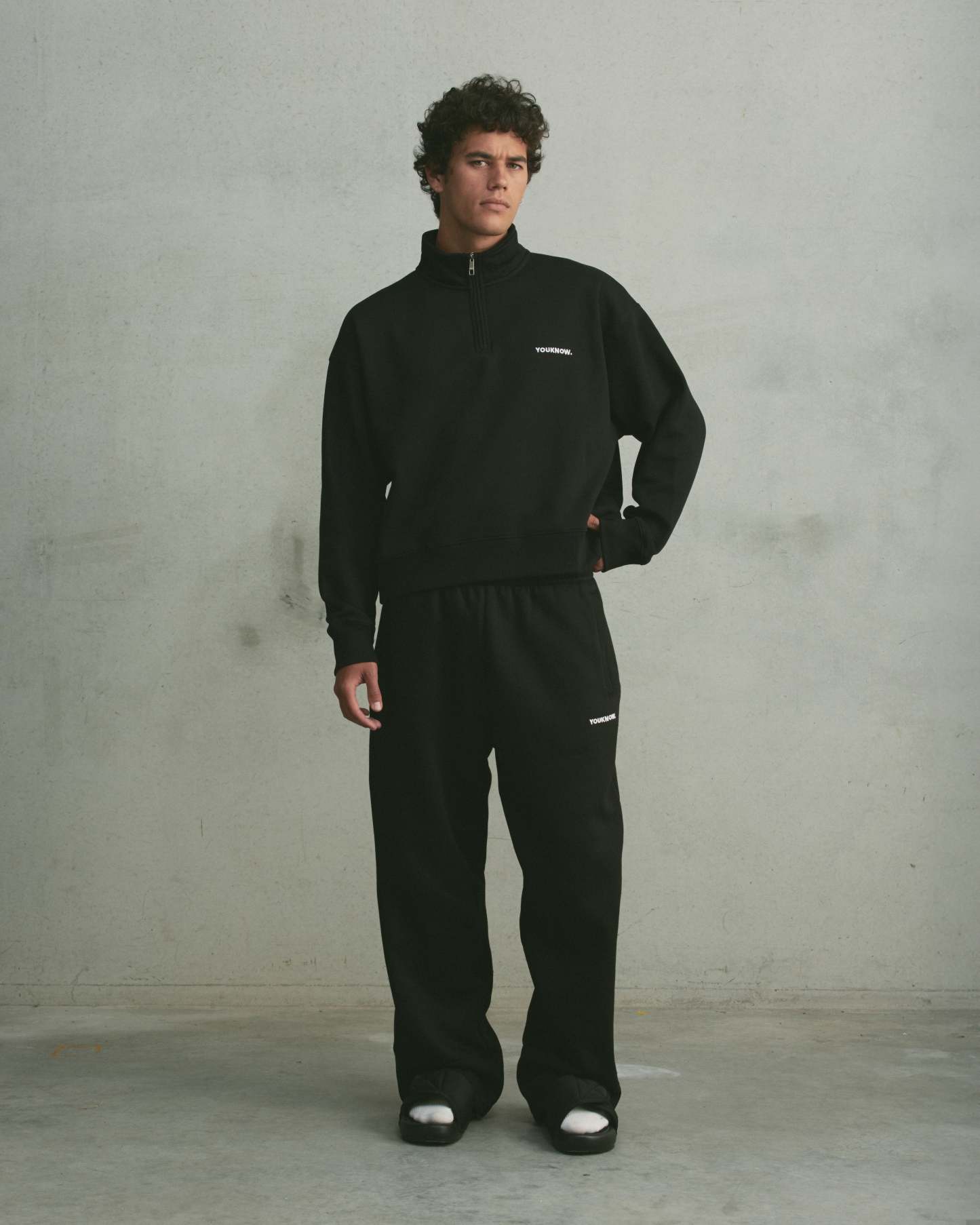 The Core Wide Leg Sweatpants feature a relaxed wide-leg silhouette with side pockets and a subtle embroidered logo, designed for effortless, everyday wear.