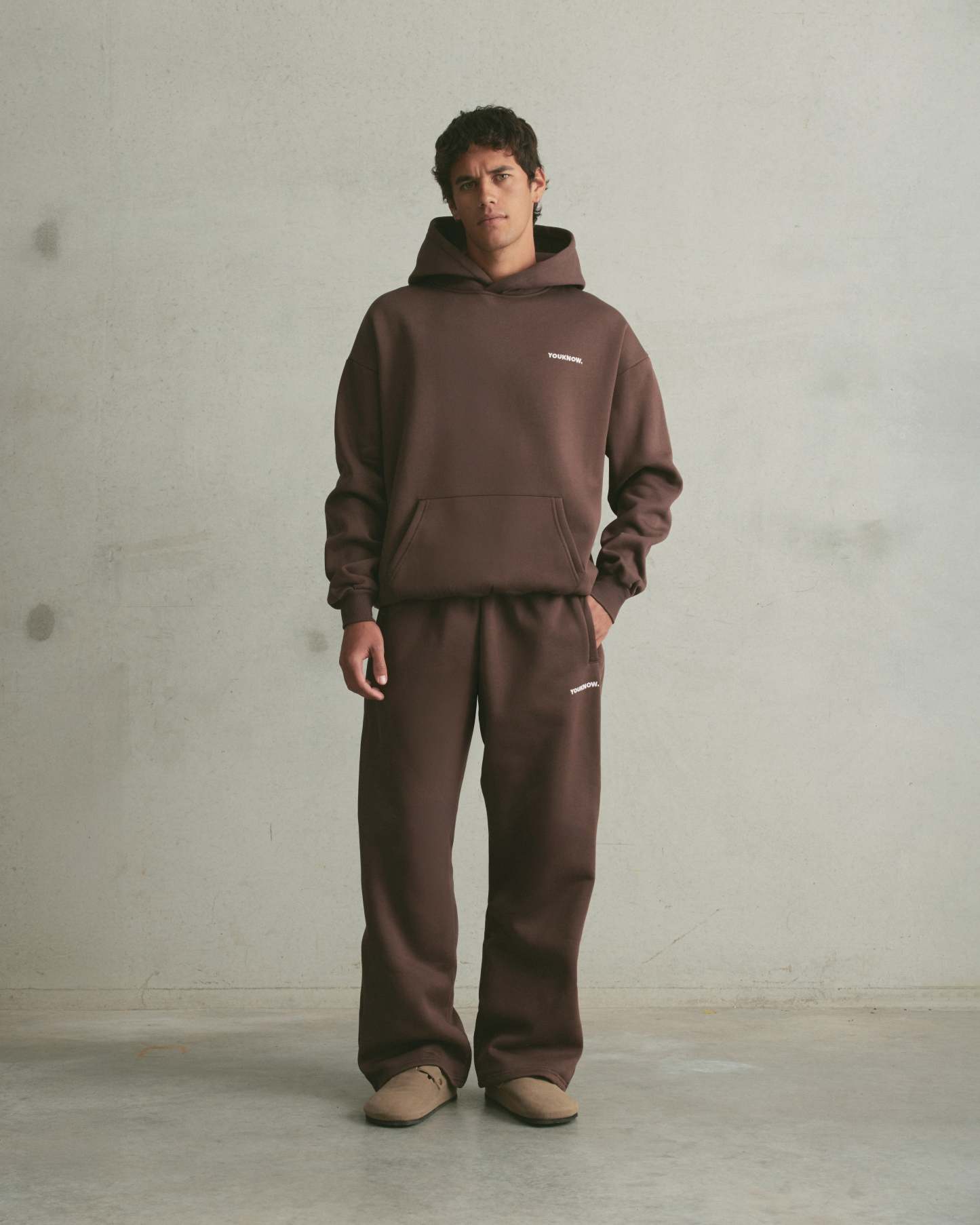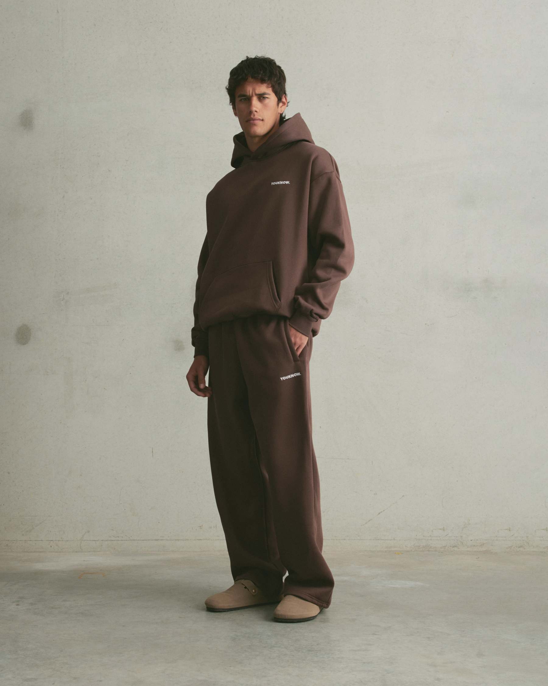 The Core Wide Leg Sweatpants feature a relaxed wide-leg silhouette with side pockets and a subtle embroidered logo, designed for effortless, everyday wear.
