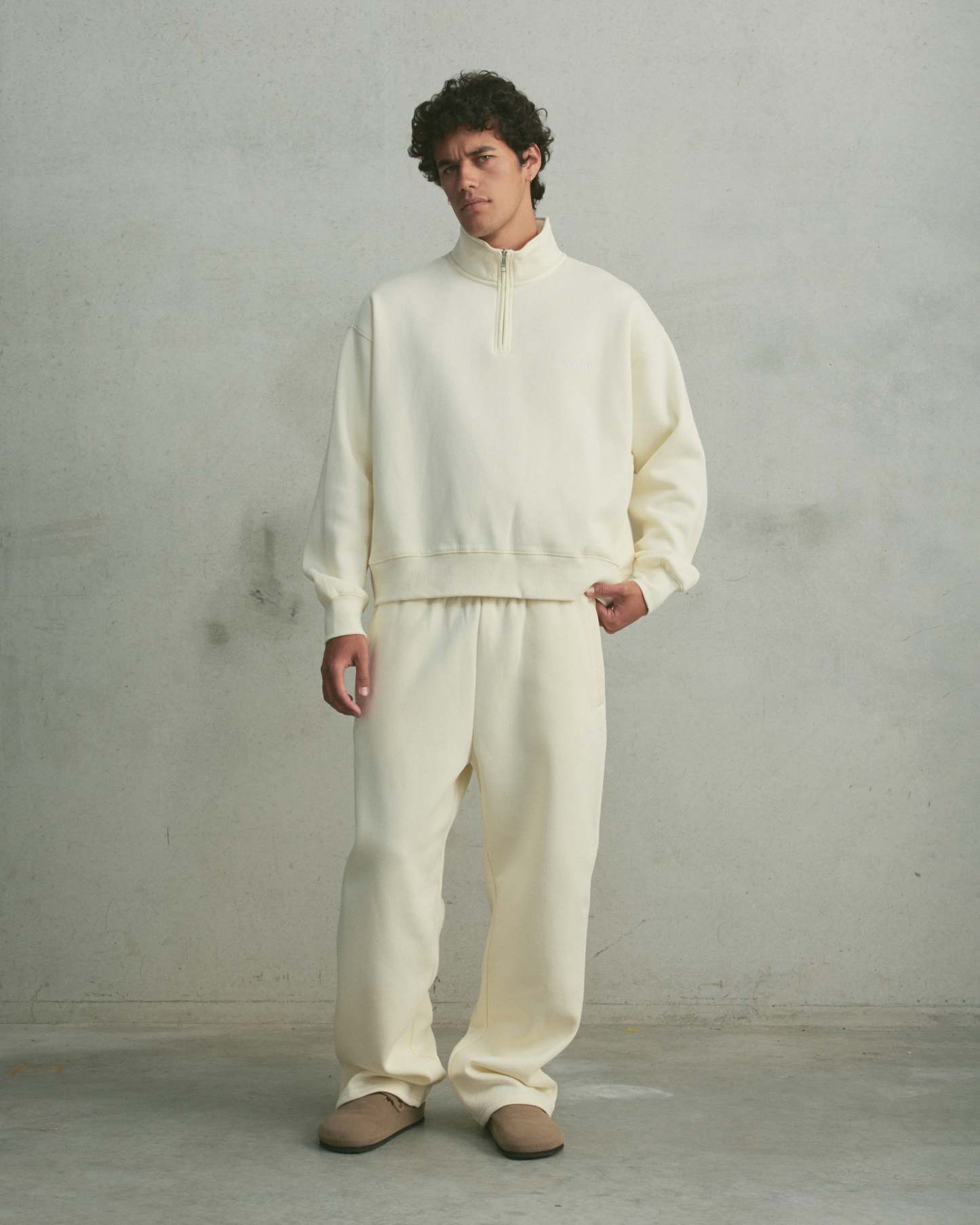 The Core Wide Leg Sweatpants feature a relaxed wide-leg silhouette with side pockets and a subtle embroidered logo, designed for effortless, everyday wear.