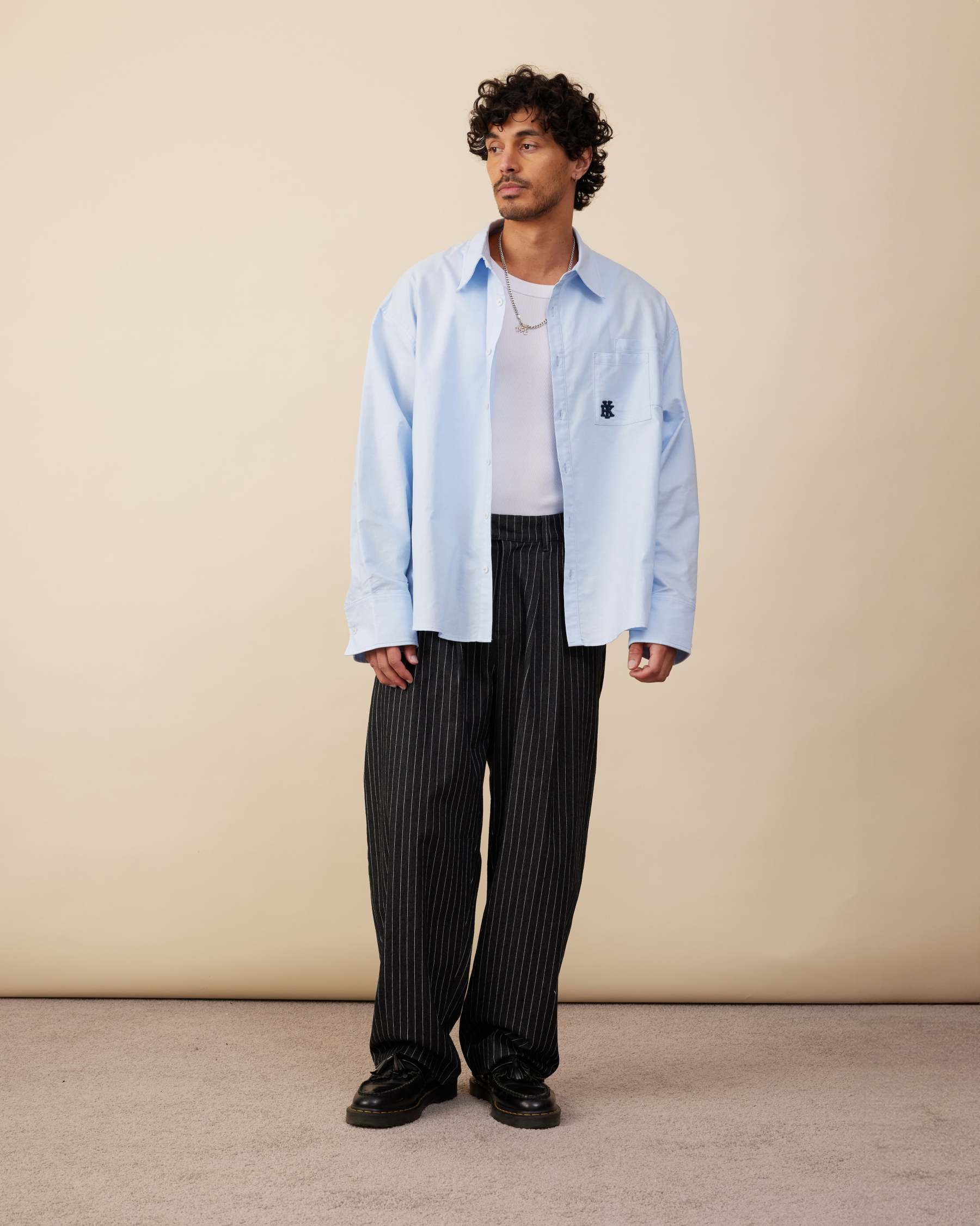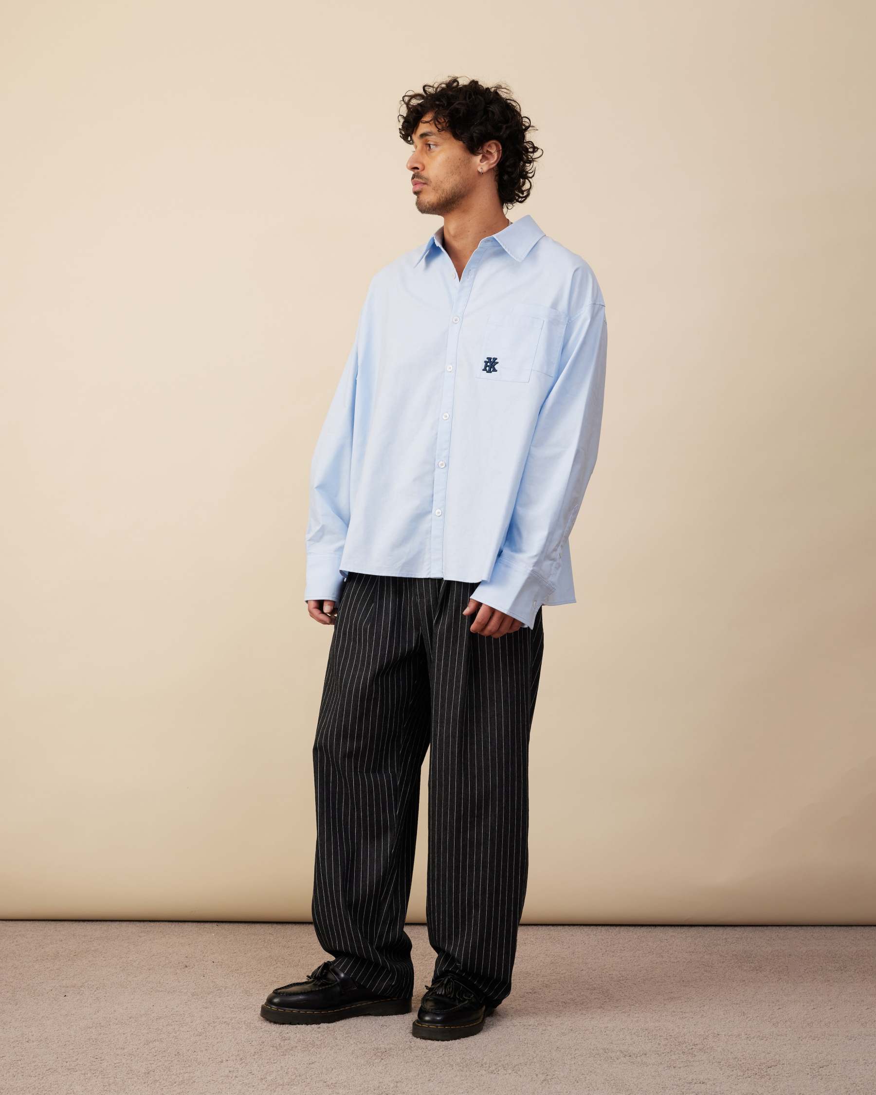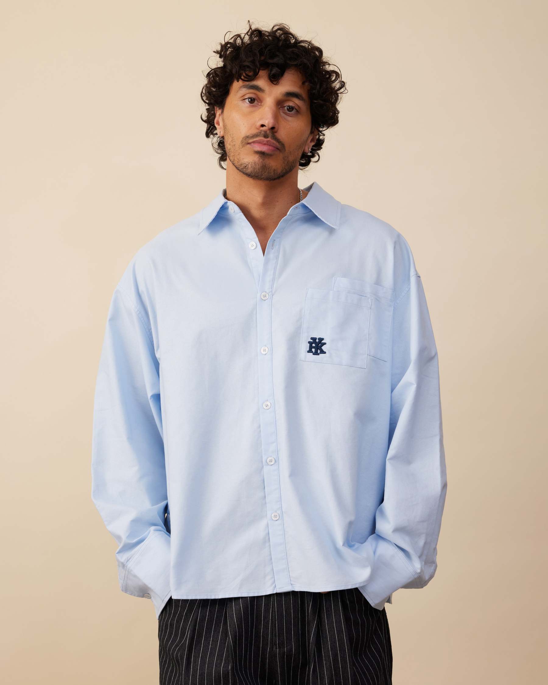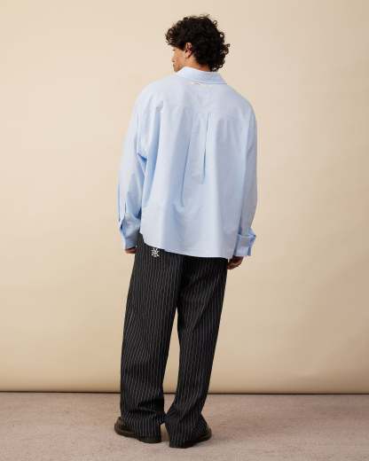 The Double Pocket Longsleeve Shirt is crafted from mid-weight cotton in an oversized, boxy fit. Designed with button detailing along the waistline, it features a double pocket on the left chest with a raised embroidered logo, and a woven patch at the back neck. This garment does have an oversized, boxy fit- consider sizing down for a more true to size fit.