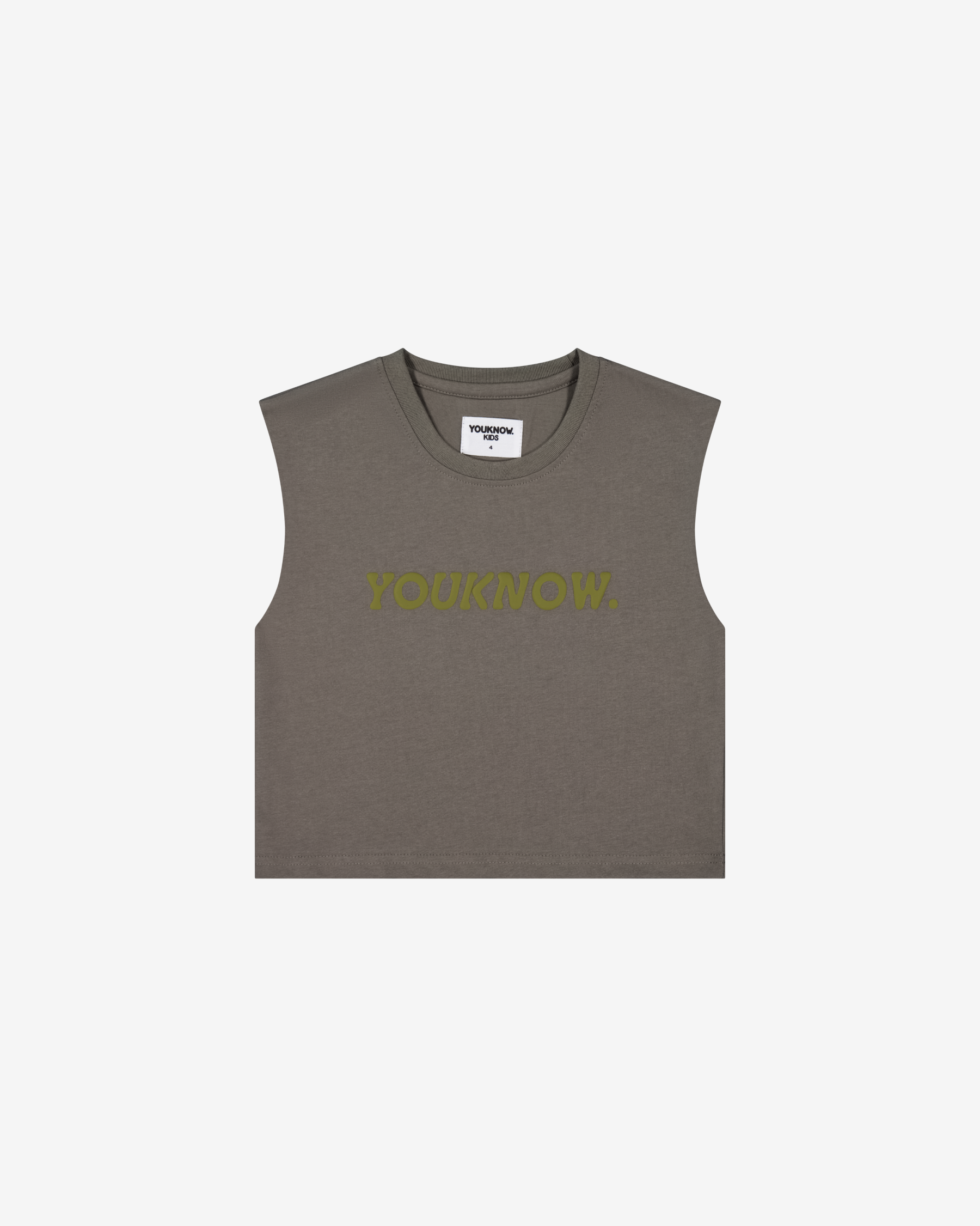 The Kids Boxy Tank features an oversized boxy shape with a front puff-print logo, perfect for easy summer wear.